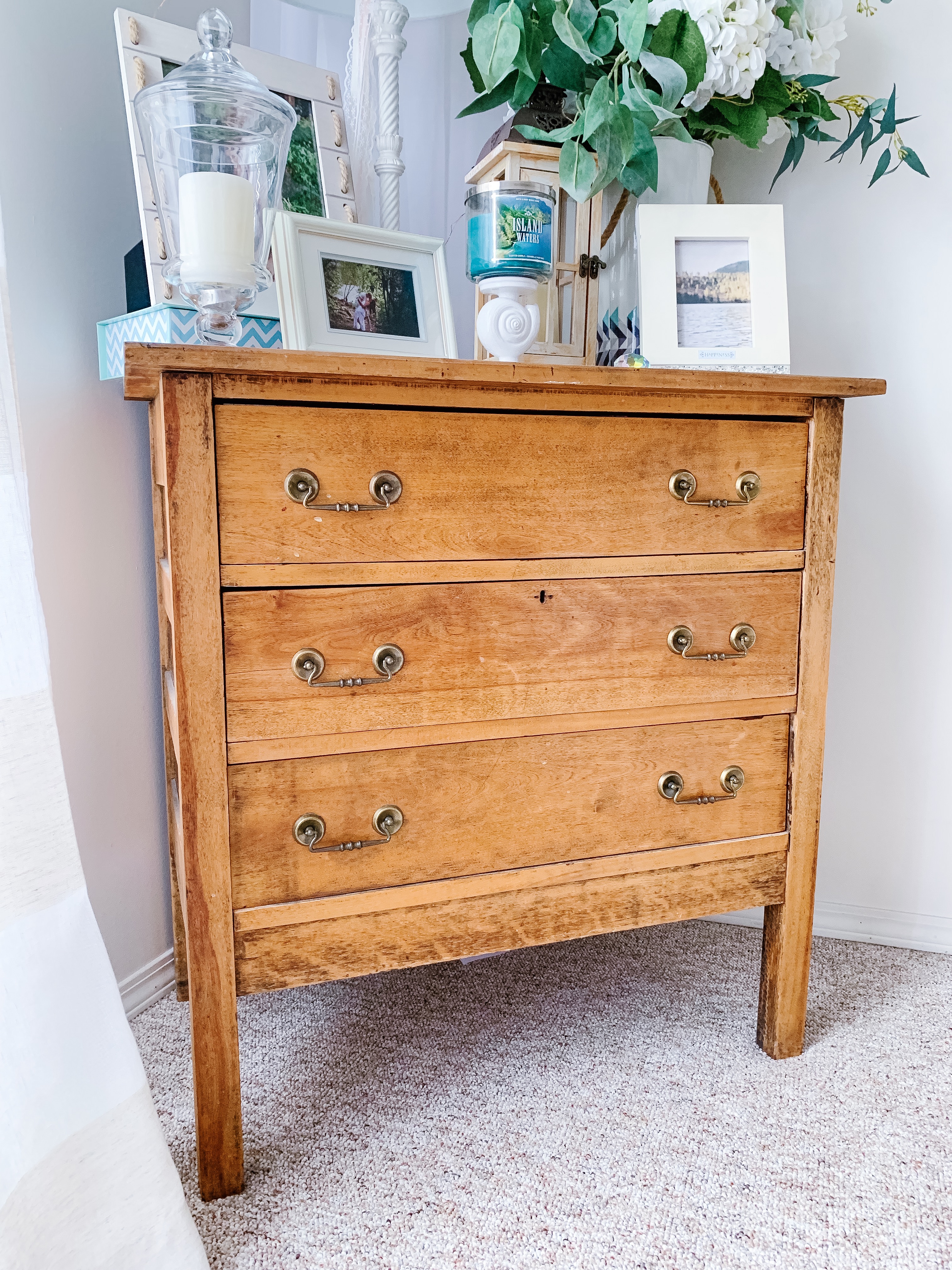 I thought about painting it when we first got it, but I am so glad I didn’t. I love painted furniture, but this dresser does not need it.