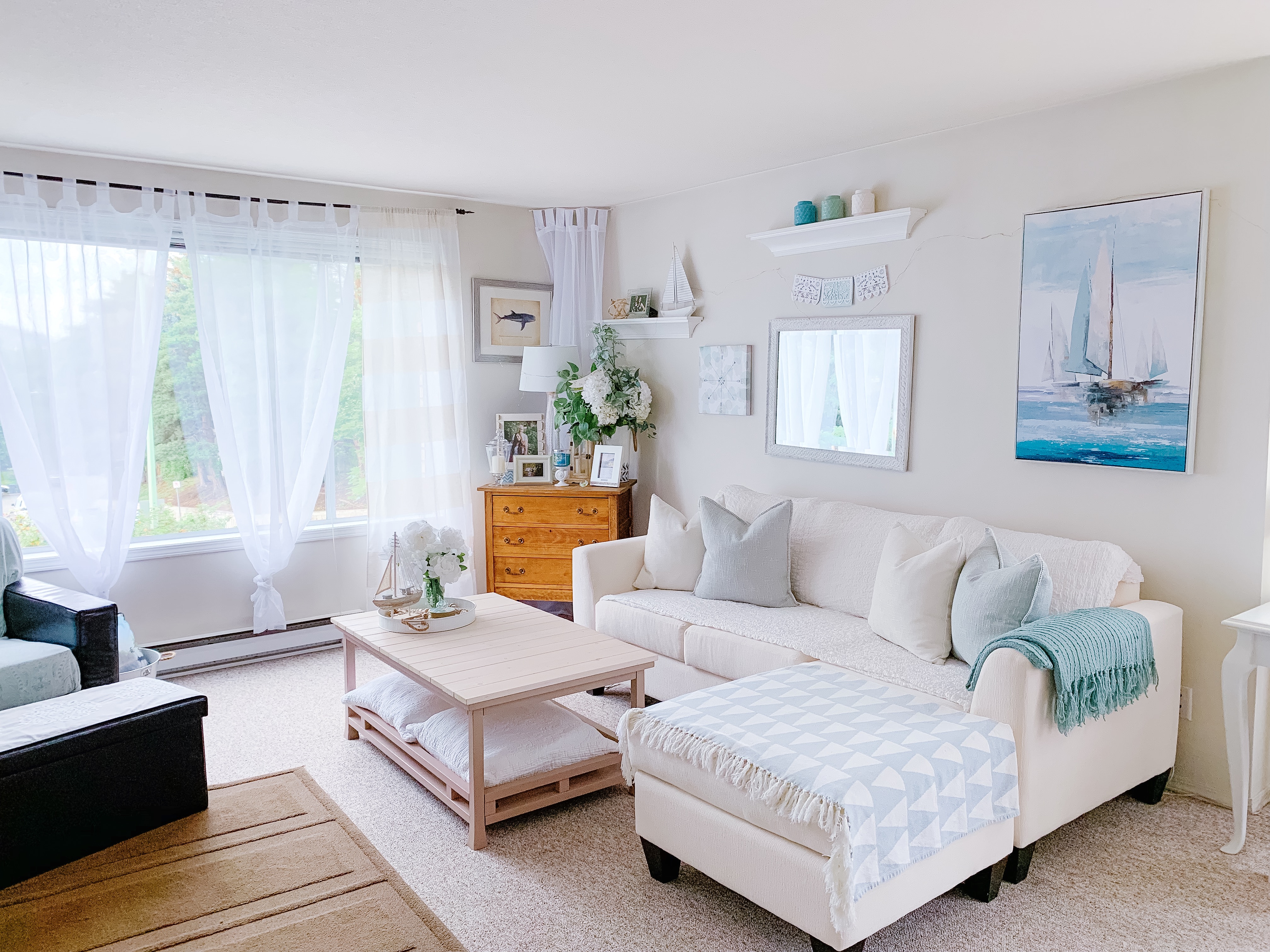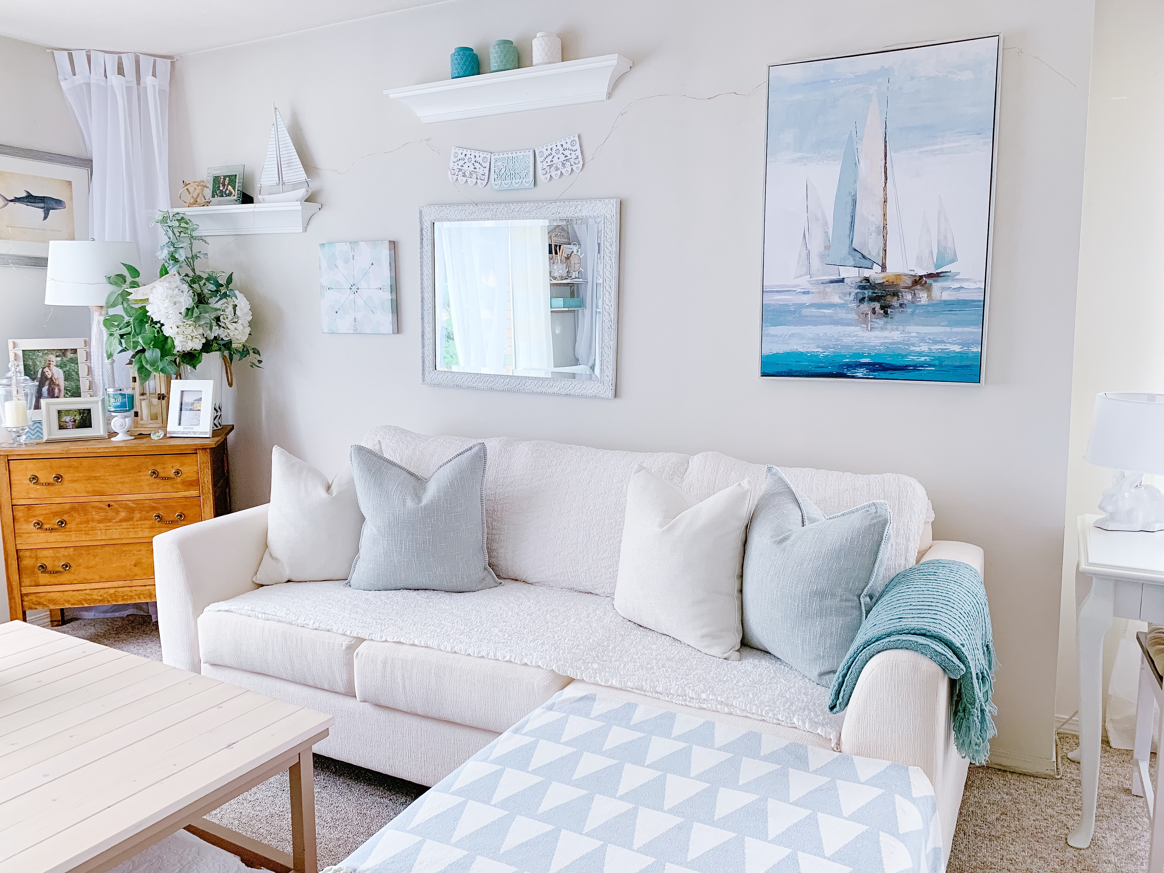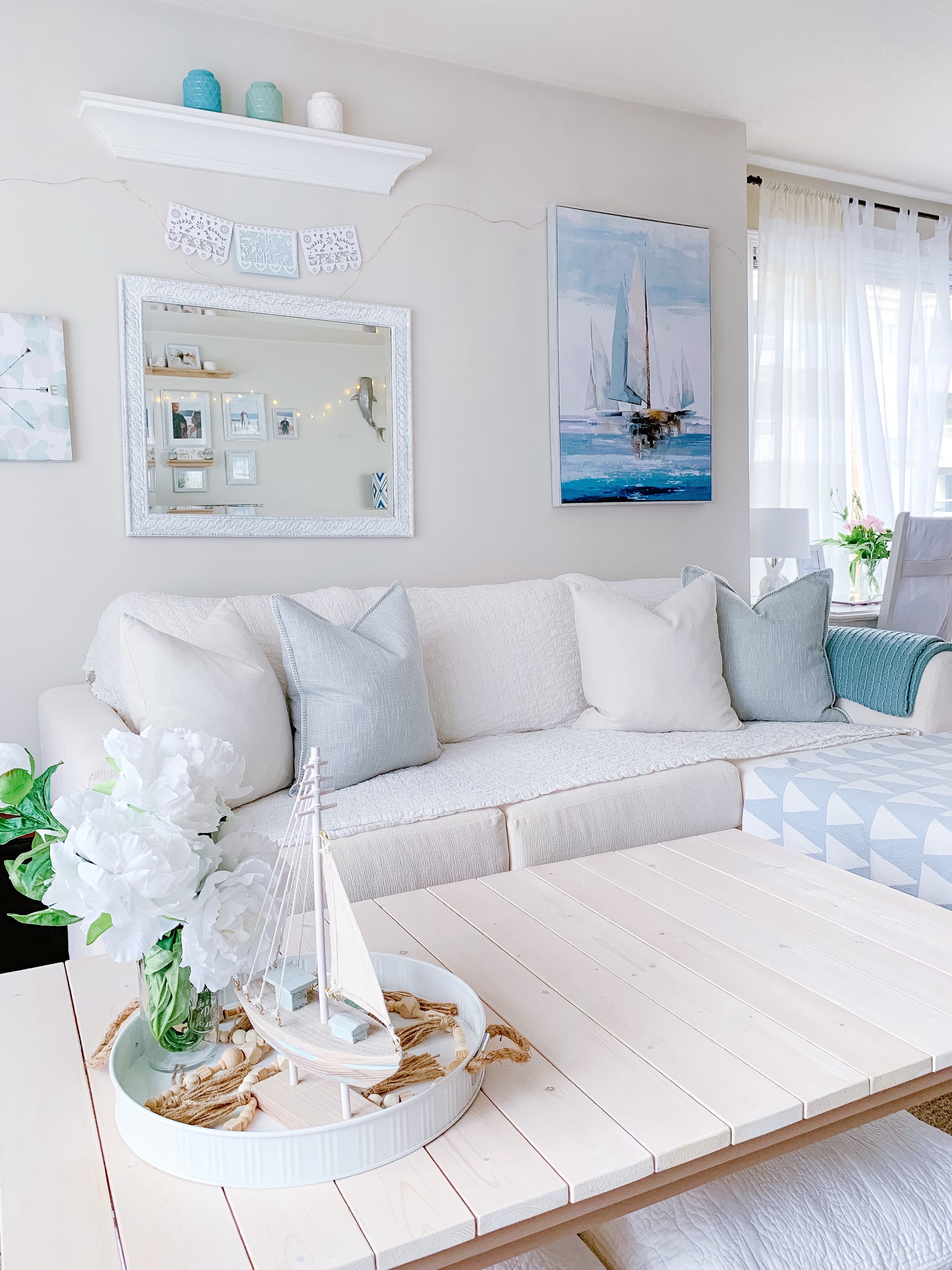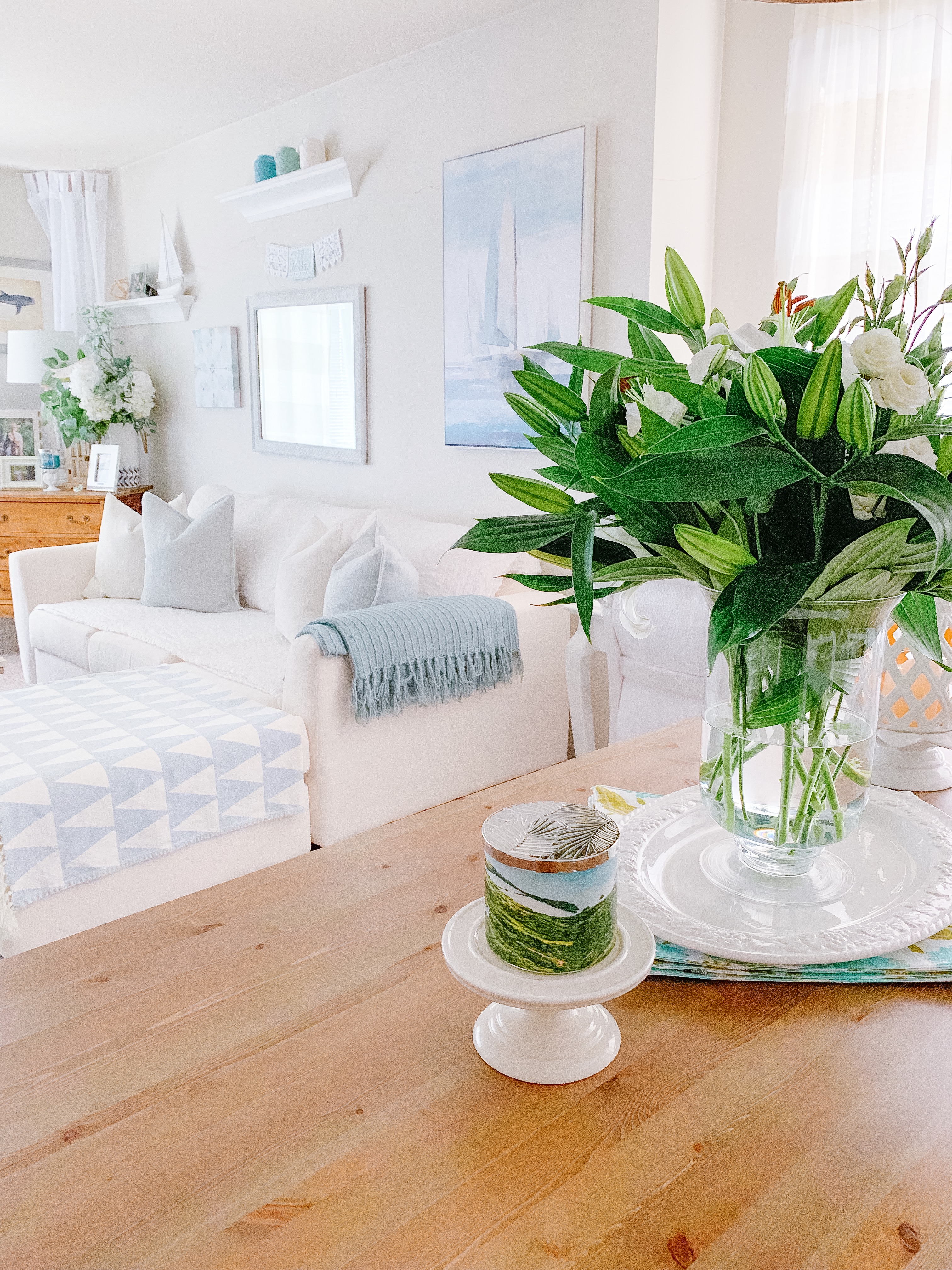 In the summer, I like to decorate with a loose beach theme. Living in the Okanagan, I lean more towards a lake theme vs. seaside decor, and the best places I’ve found lake decor are Homesense, Winners, and Marshalls. They’re all owned by TJX, so you can typically find a lot of the same things in each store – this is handy when you’re looking for multiples.