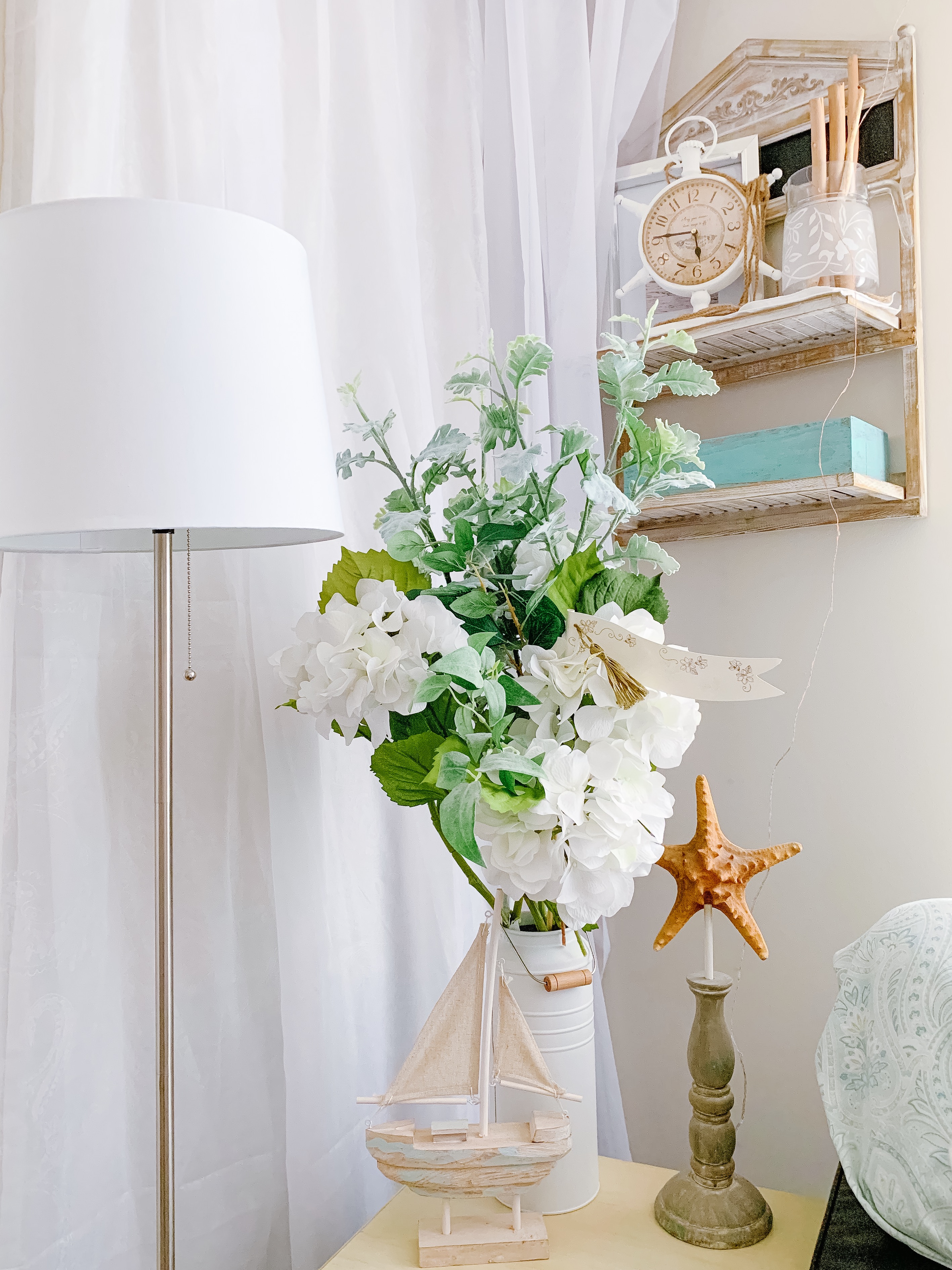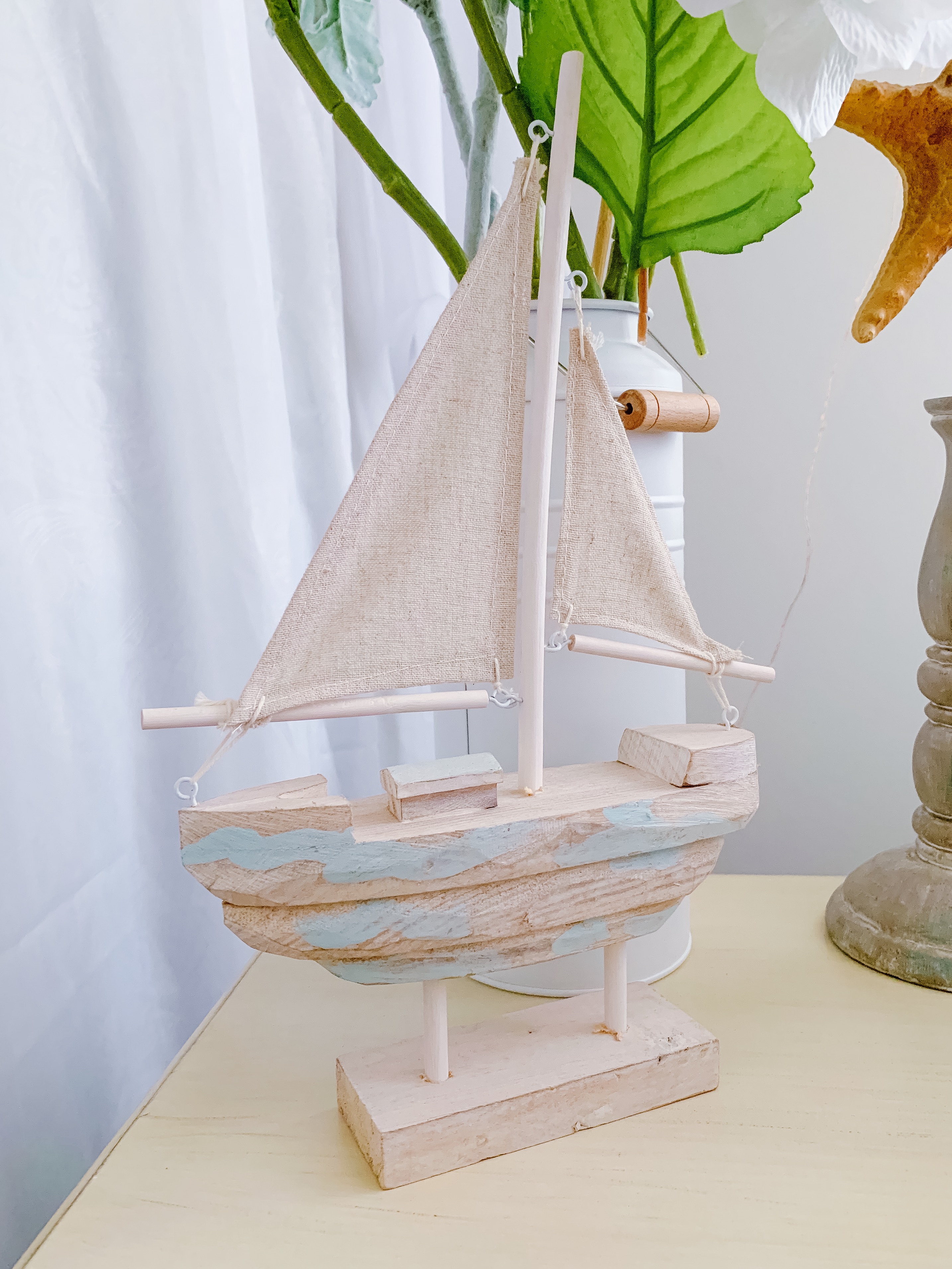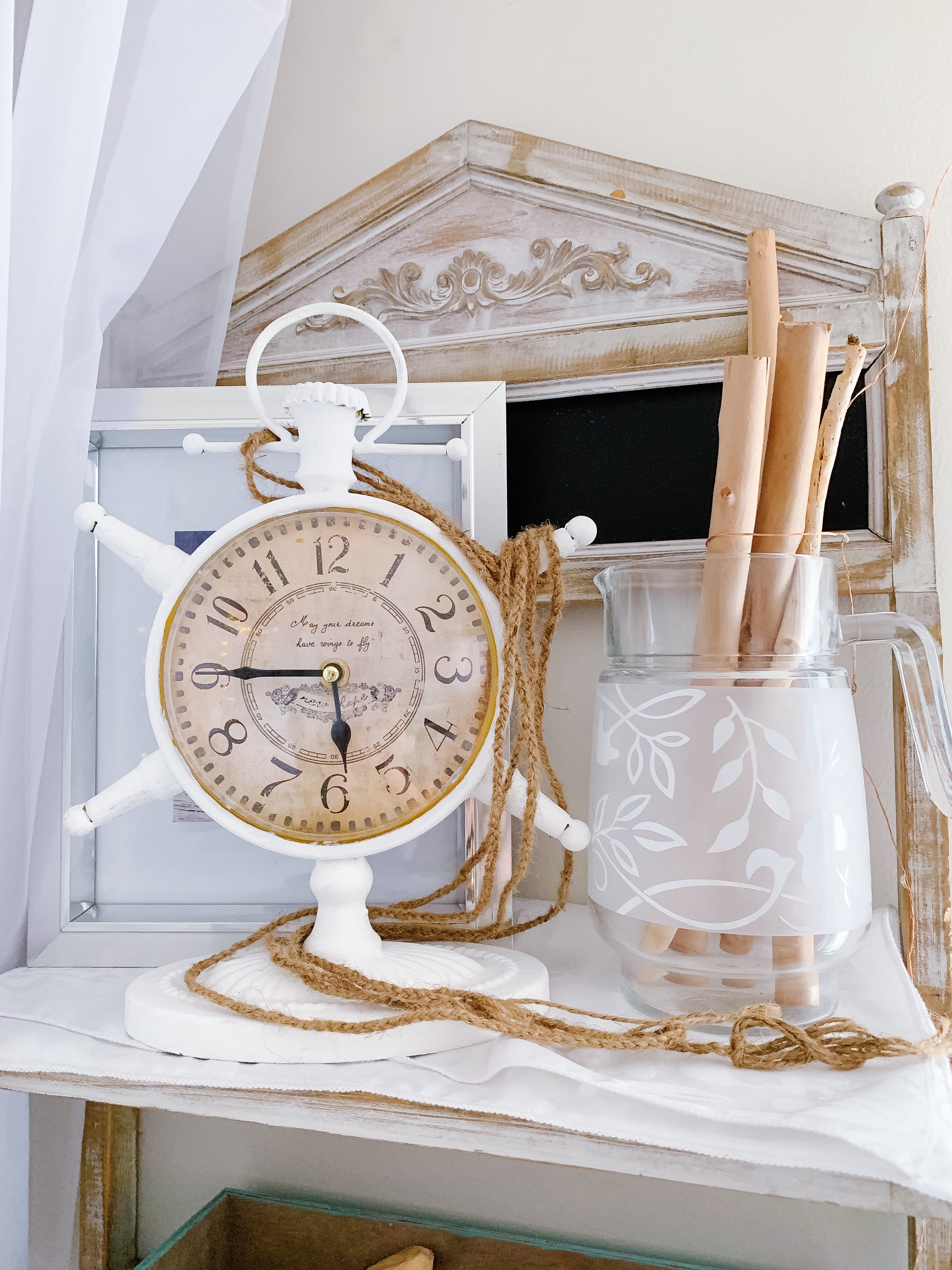 This clock actually started out mustard yellow. I painted it white, and added braided twine to give it a true nautical feel. If you find something that isn’t exactly what you want, think about what you can do to change it. Some of my favourite decor pieces are ones I’ve revamped!