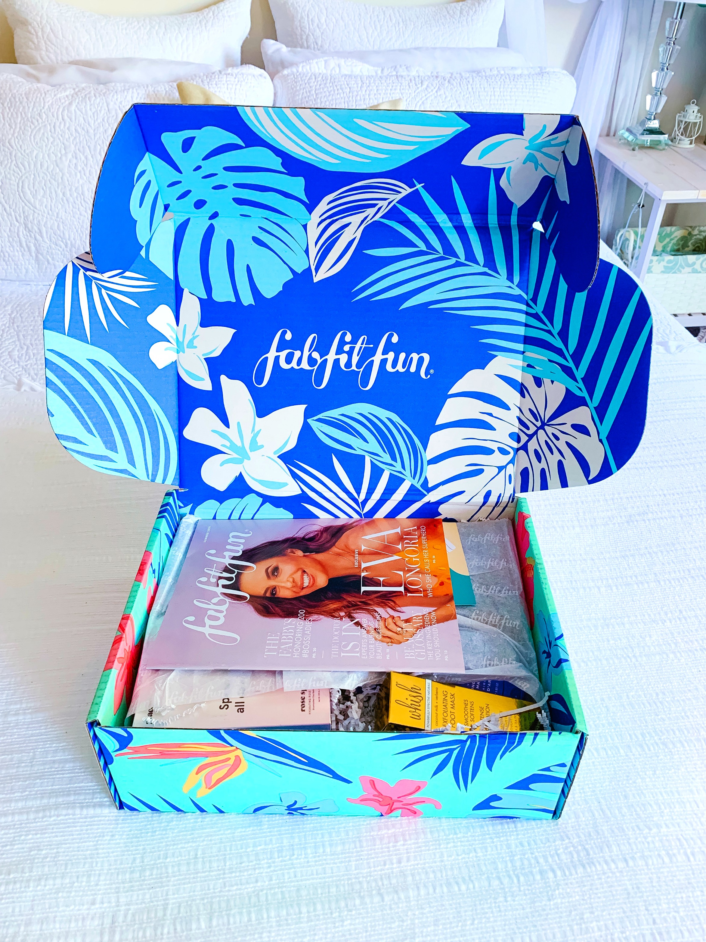 It’s time to unbox FabFitFun! The print on this box is so modern and Hawaiian. I’m a sucker for anything turquoise, and anything palm printed, so this box is very appealing to me.