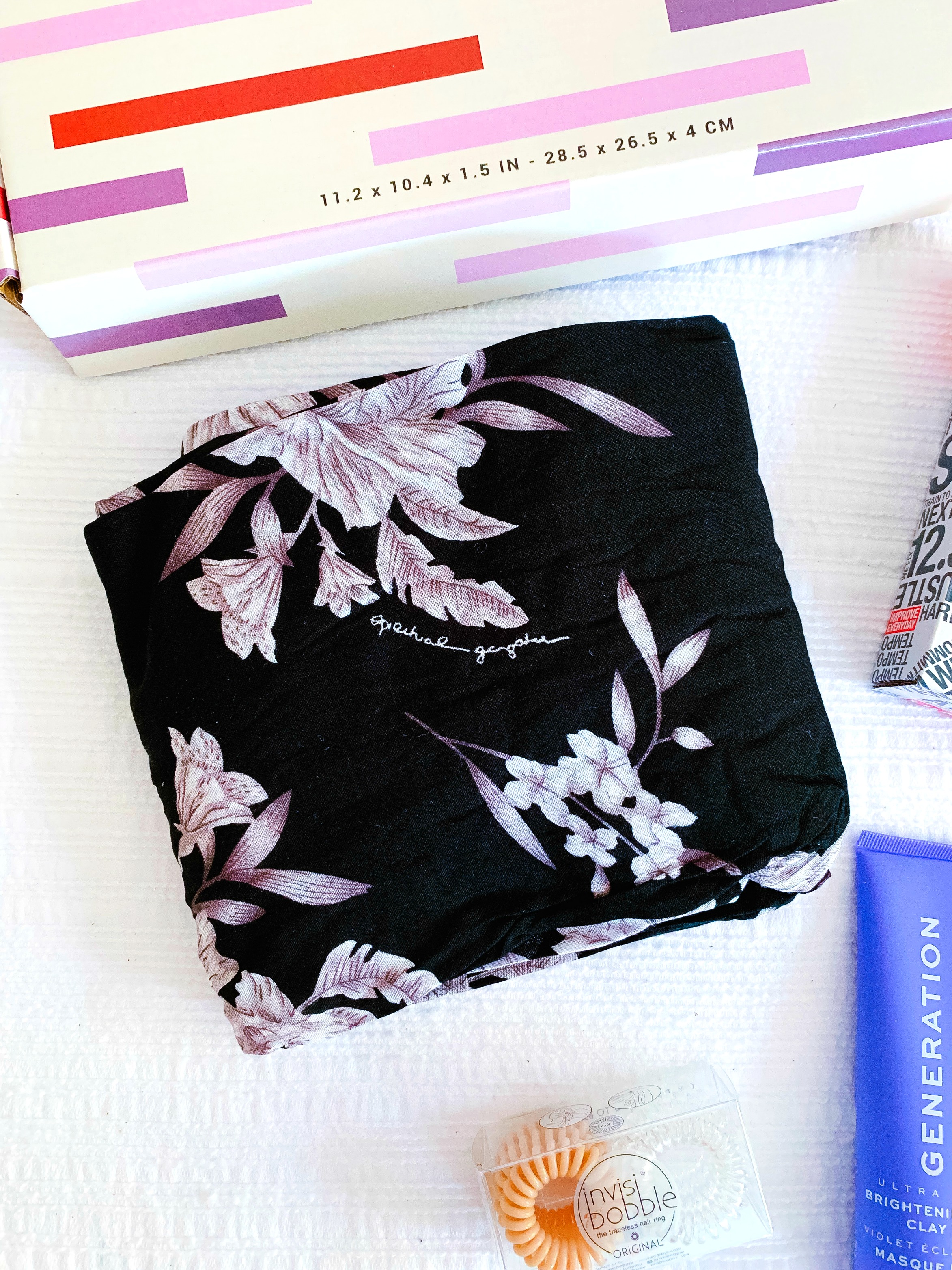 Right away, I was surprised to see how many bottled products there were. They were full-sized bottles though, which was good. I was excited to see a floral print fabric item, and couldn’t wait to see what it was.