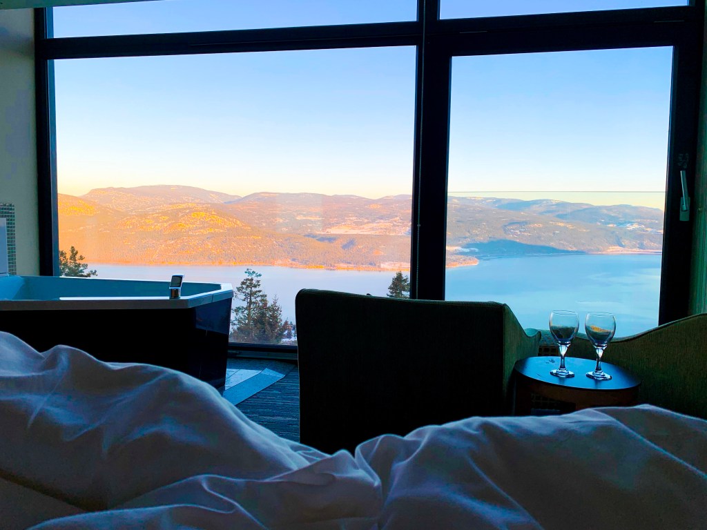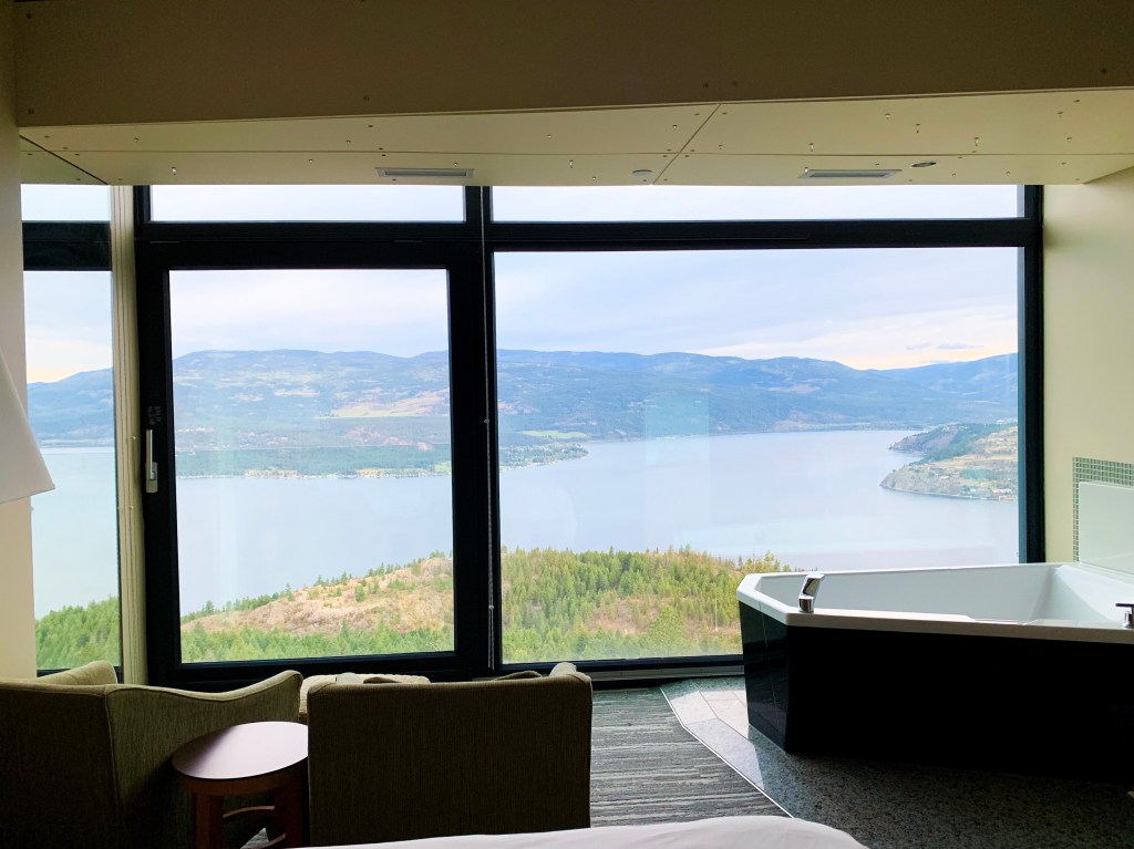 Have you heard of Sparkling Hill? It’s a gorgeous, Swarovski crystal adorned wellness resort, located just outside of Vernon, B.C.! What sets this resort apart is that it boasts an array of saunas, steam rooms, spa treatments, and an incredible infinity pool overlooking Okanagan Lake – and you can access it all for free when you book a room.