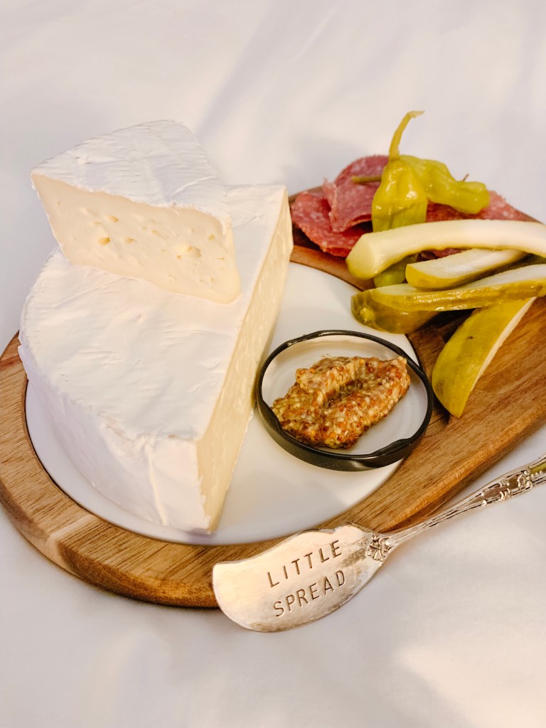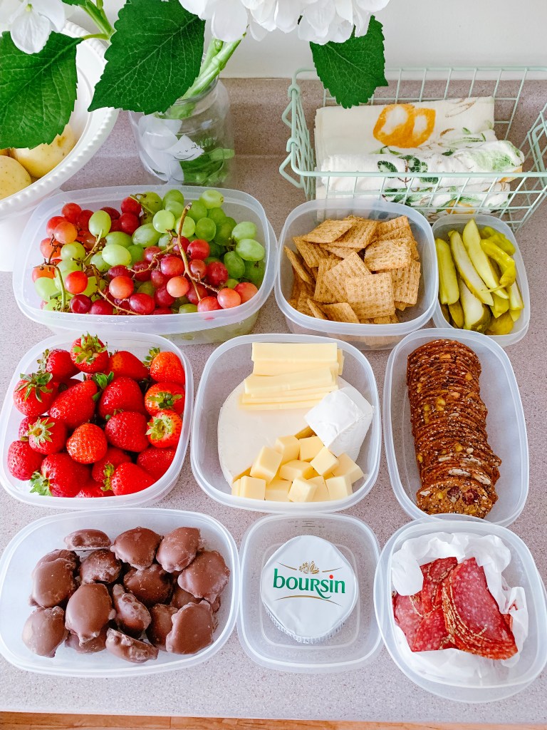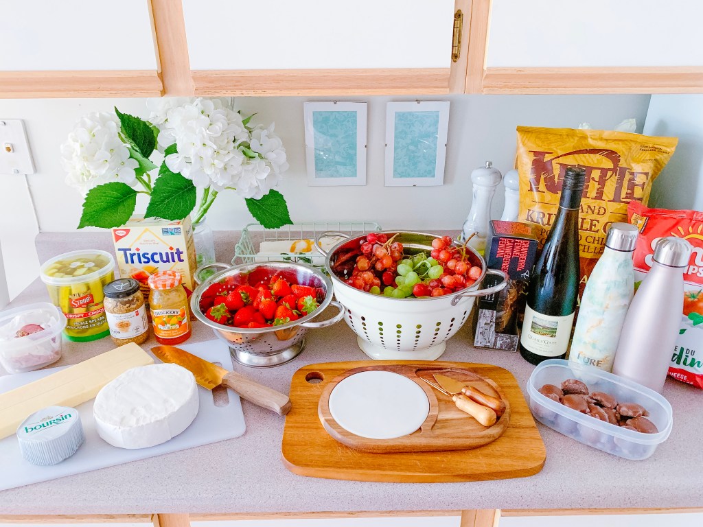 I like to put together a charcuterie platter, with assorted cheeses, cured meats, fruit, crackers, and jellies. Up the ante by bringing along a platter, and cutlery.