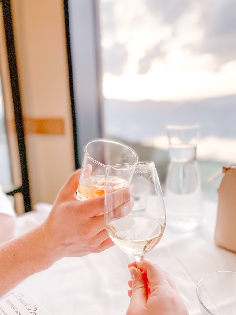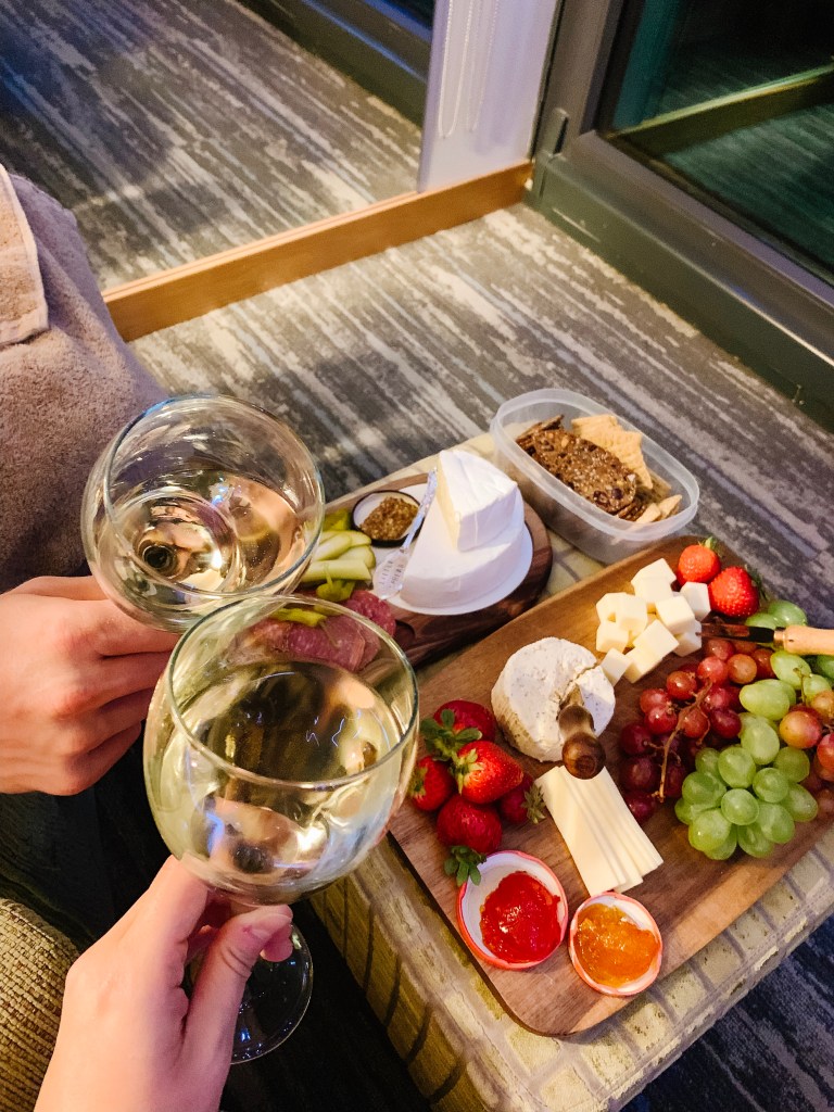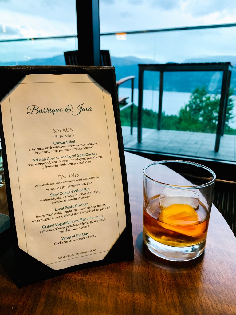 If you still really want to have the experience of going out for a romantic meal, why not try Sparkling Hill’s bar, Barrique & Java? There is a small menu of sandwiches, salads and snacks that are very reasonably priced. The bar also has a great view, and a small patio (which may or may not be open, depending on the weather since you’re booking off-season!).