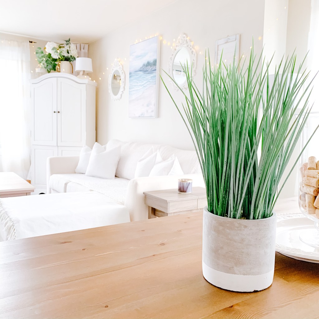19. Get a houseplant (real or fake), and put it somewhere you’ll see it right away – your desk, nightstand, kitchen island or coffee table.