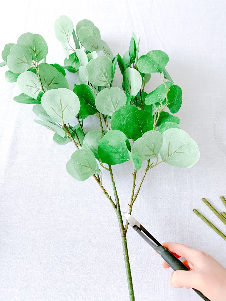 Trim your eucalyptus branches off of the bush so you have several smaller pieces.