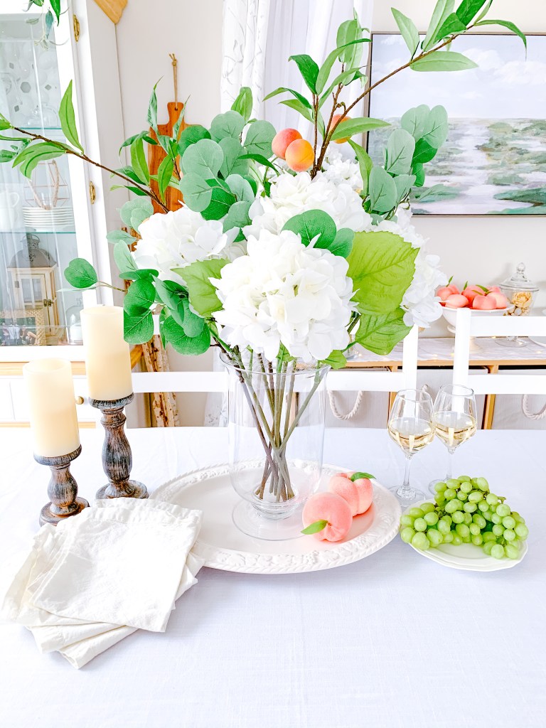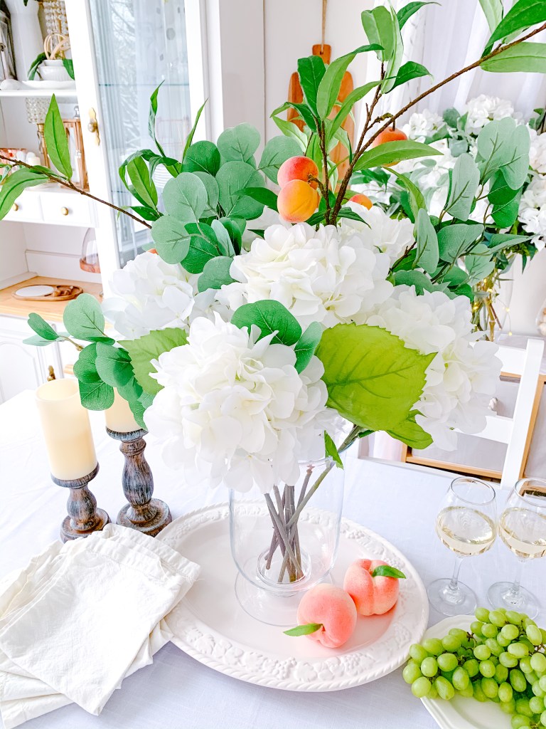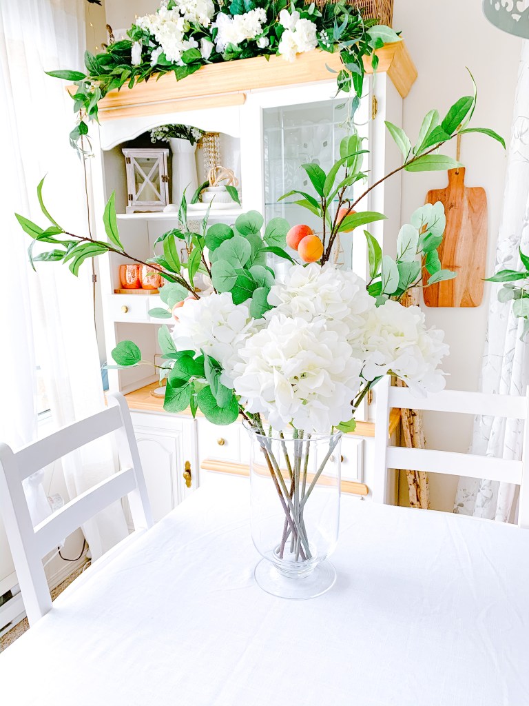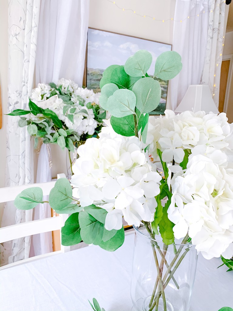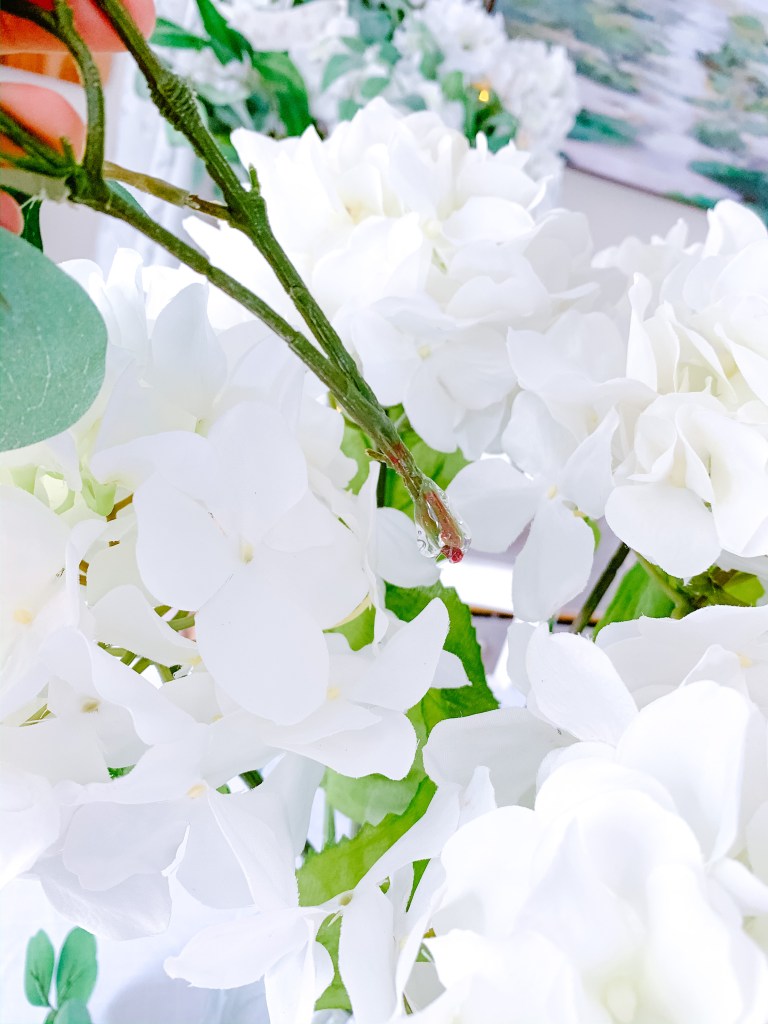 For my first floral tutorial, I thought we’d go classic with my favourite flower – hydrangeas! Plus, white hydrangeas + loads of greenery is kind of my signature style in my home. You might recognize the look from my Instagram page, or past home tours!