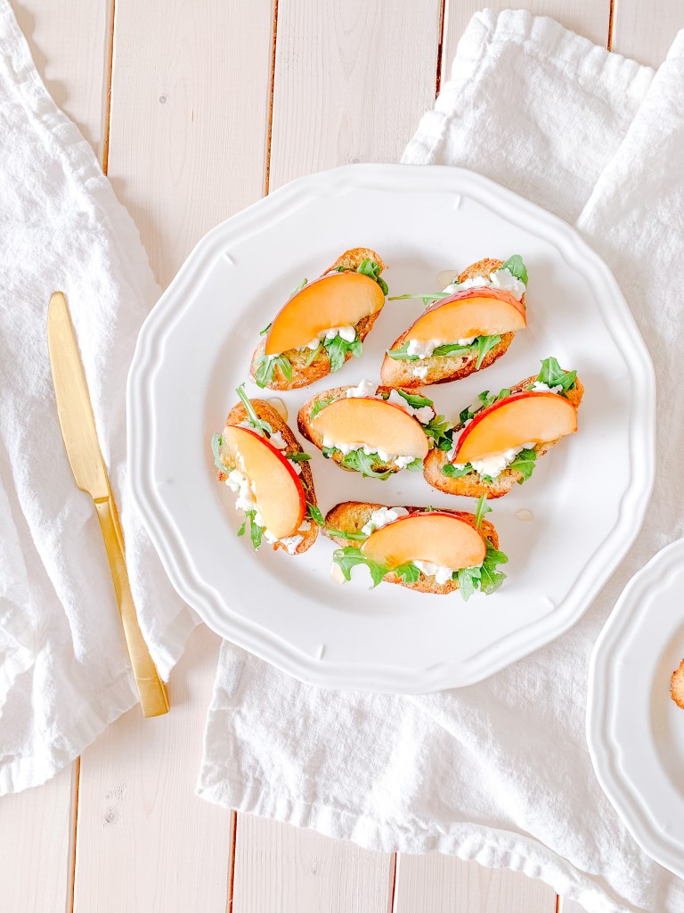 I think it’s about time to up our snack game to something a little fancier, now that it’s warming up outside and summer is imminent (so glad to see you, sunshine!). If that sounds good to you, read on, for a fresh take on the classic crostini appetizer!