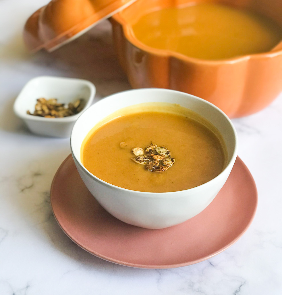 When I reached out to them to see if they’d be interested in collaborating on a fall blog post with me, I was overjoyed when they quickly responded with a great big ‘yes!’! They suggested we share a ‘pumpkin soup’ recipe together, and I couldn’t have been happier – what could be more fall than this richly coloured, pumpkin, squash and sweet potato soup?