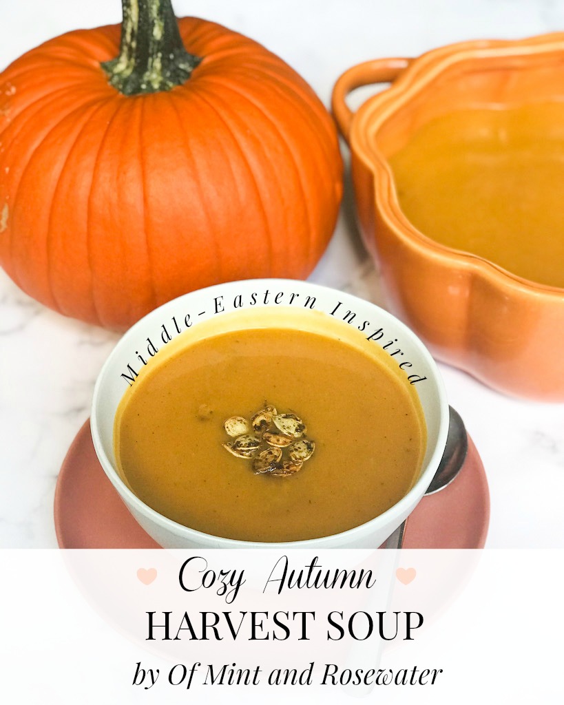 I am so pleased to share this gorgeous autumnal soup from Of Mint and Rosewater with you! I recently connected with Zeinab and Reem, the sisters behind Of Mint and Rosewater over on Instagram – you could say we both fell head over heels for each other’s content and clicked instantly!