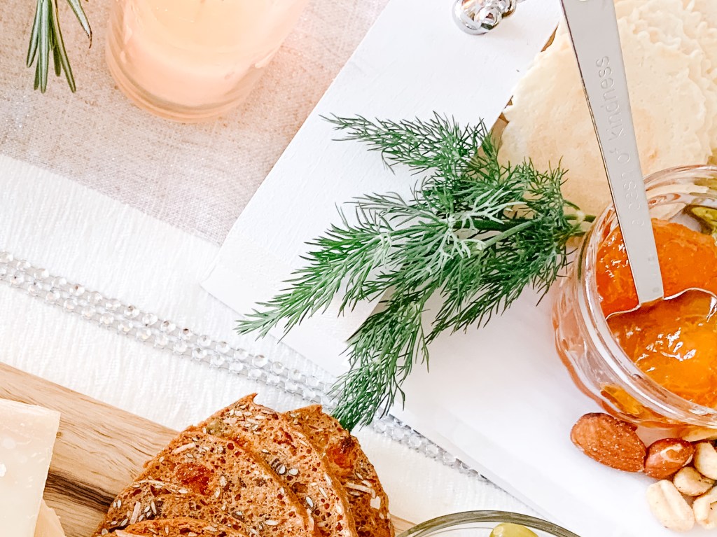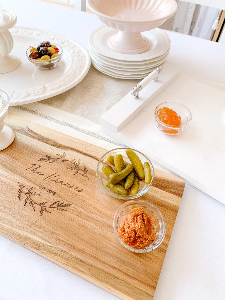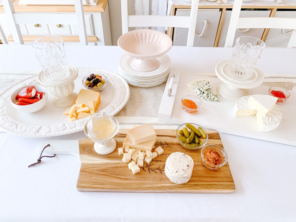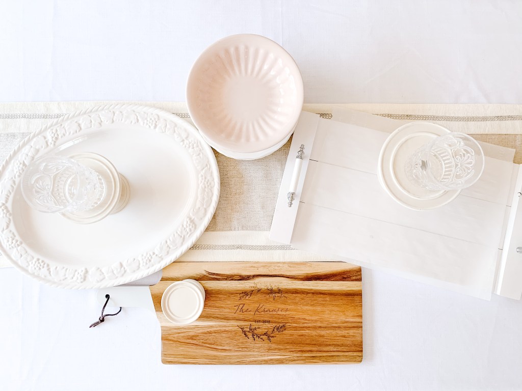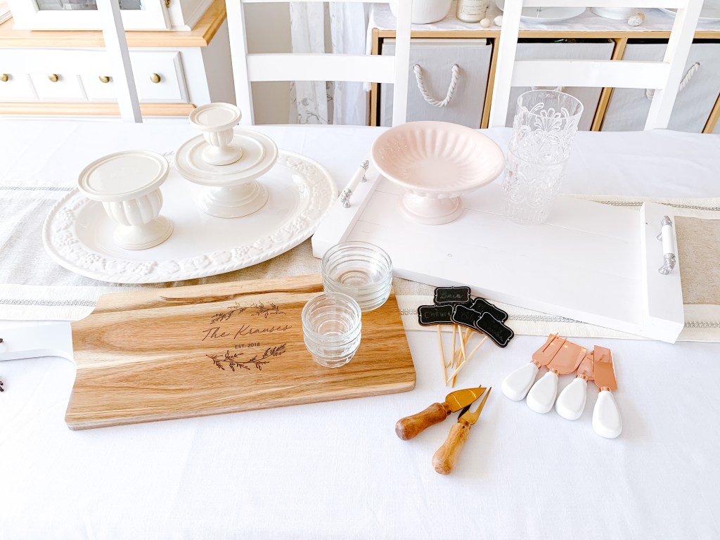 Start by laying out your dishes and boards. Remember, nothing is permanent, you can adjust as you go if need be.