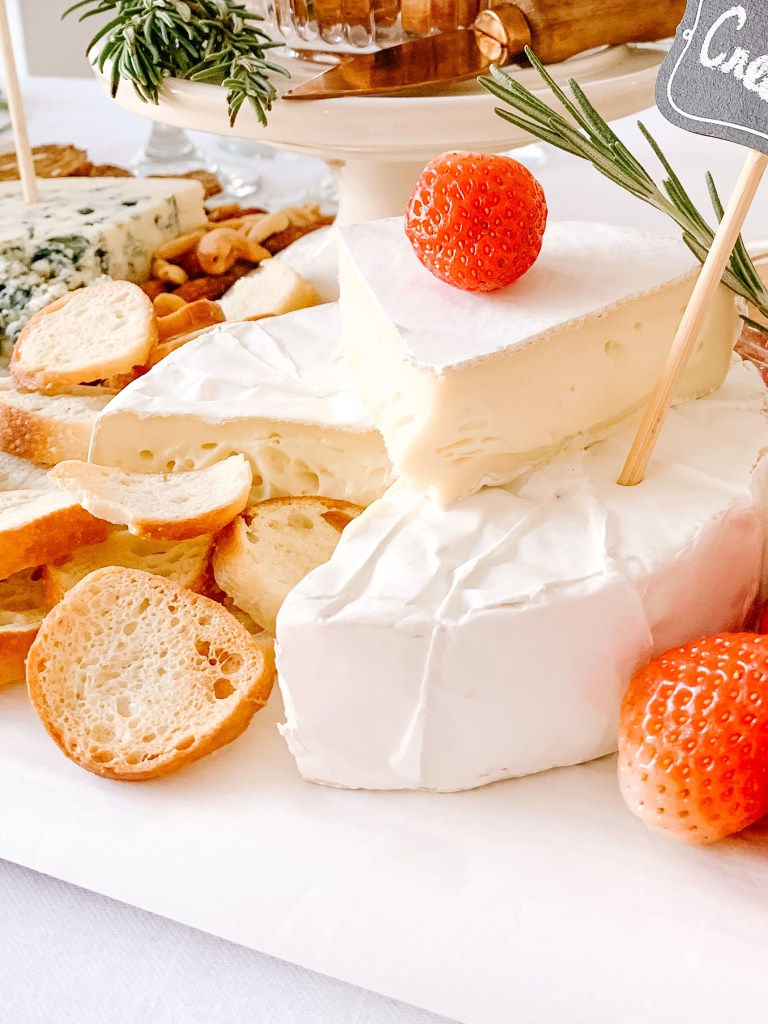 With the brie, I’ve purchased an entire wheel, and cut 1/4 out and placed it on top. I think it gives the impression of a display in an authentic cheese shop window!