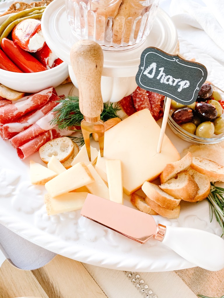 A cheese serving set is nice to have, but you can also use small forks and spoons if you don’t have any. I’ve even used measuring spoons!