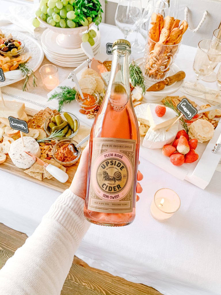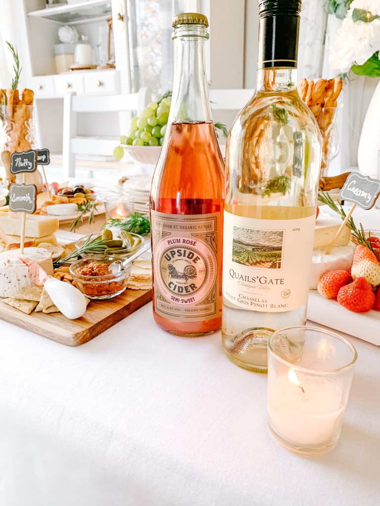 Don’t forget your favourite wines and ciders to go with your charcuterie! I’ve paired mine with Upside Cider’s Plum Rosé, and Quails’ Gate’s Chasselas.