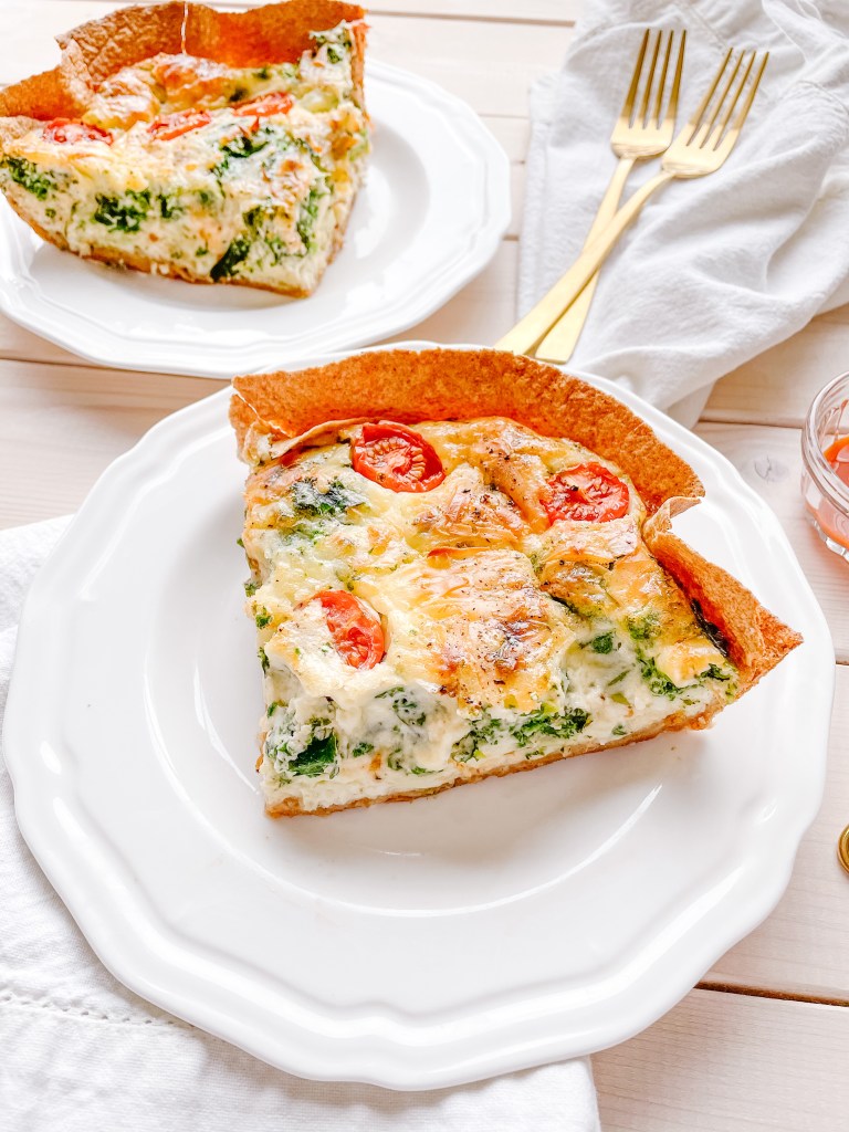 Quiche is so versatile! It’s an easy meal or snack for any time of the day, and thanks to heart-healthy eggs, nutritious vegetables, and melty cheese, it helps keep you full until your next meal. Talk about a power dish! I like to make this quiche once a week and eat it all week long for an easy breakfast or lunch.