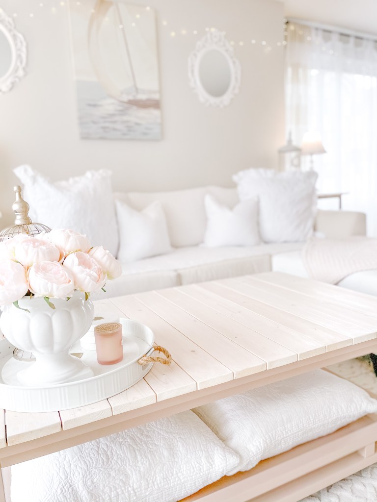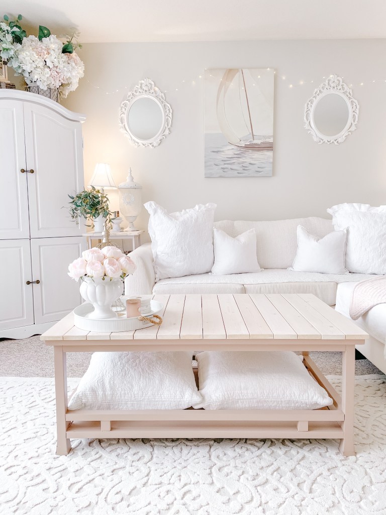 Fun fact – this table used to be espresso with a glass top! Tristan and I gave it a makeover and now I’m asked about it often. Perhaps a DIY coffee table blog post is in our future?