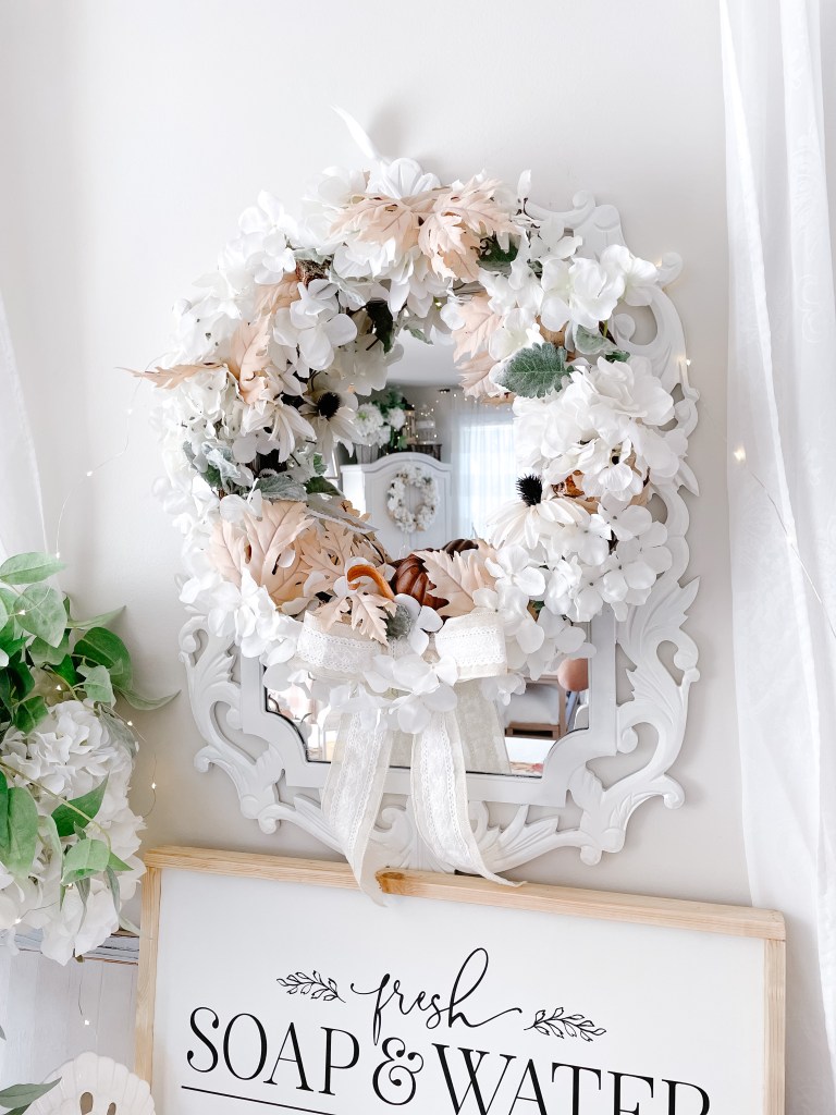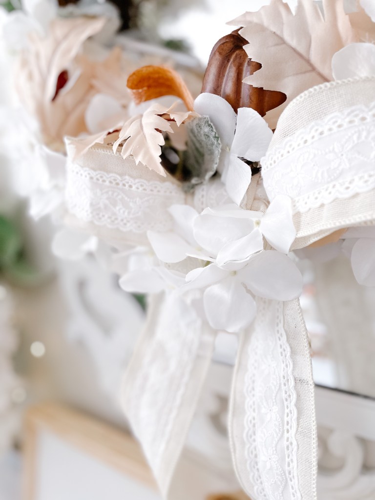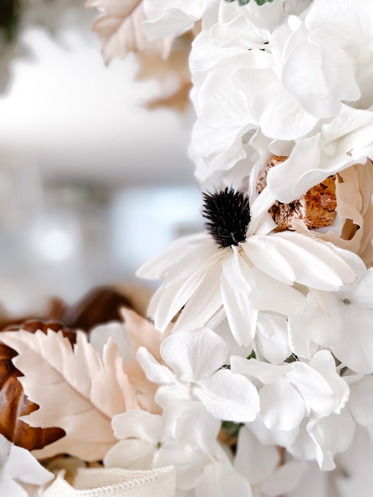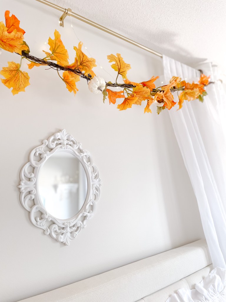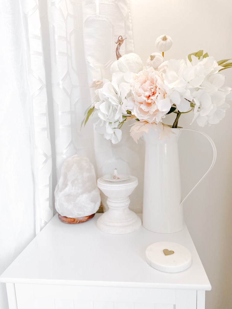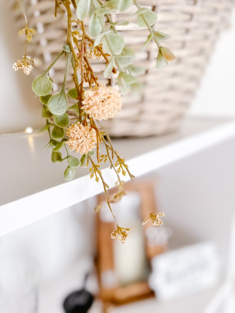 Foliage! Can’t have fall without crisp leaves now, can we? Try out garlands hung over beds and windows, woven along tablescapes and shelf displays, and leaves and embellishments to your existing faux flower arrangements to completely change the look for pennies. Word to the wise – white and ivory hydrangeas and dusty pink peonies work year round just by switching the leaves. Try green for spring and summer, beige and orange for fall, and glitter and snow crusted for winter.