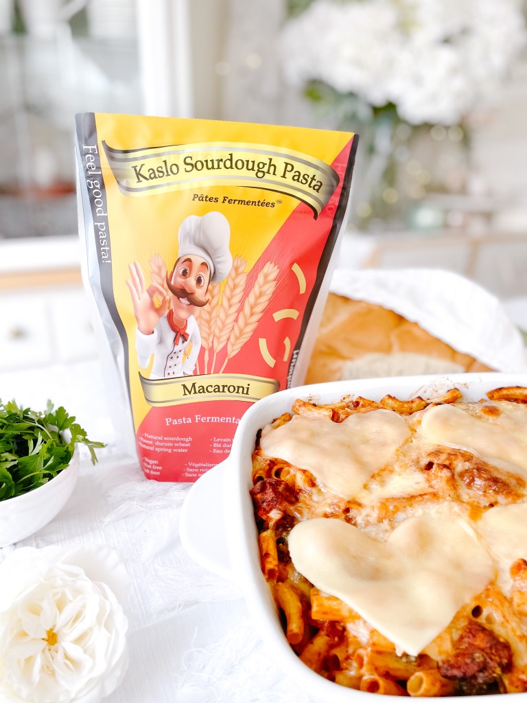 What inspired this recipe? Well, it’s always easy to be inspired by Kaslo Sourdough pasta (this recipe is a paid partnership with my friends at Kaslo, by the way!), but I also wanted to show you how to use Kaslo’s macaroni noodles as a penne. Obviously, you can use whatever shape you like in most pasta dishes, but I love a good penne pasta bake, and is it strange that I think penne is a somewhat ‘romantic’ noodle? Maybe because it’s the easiest to eat and doesn’t cover your face in sauce! Anyway, I think Kaslo’s macaroni noodle is a perfect stand in for penne or even rigatoni, if those are your favourite shapes, so I wanted to show you how this noodle holds up outside of a classic mac ‘n cheese or pasta salad. Spoiler alert – it works great!