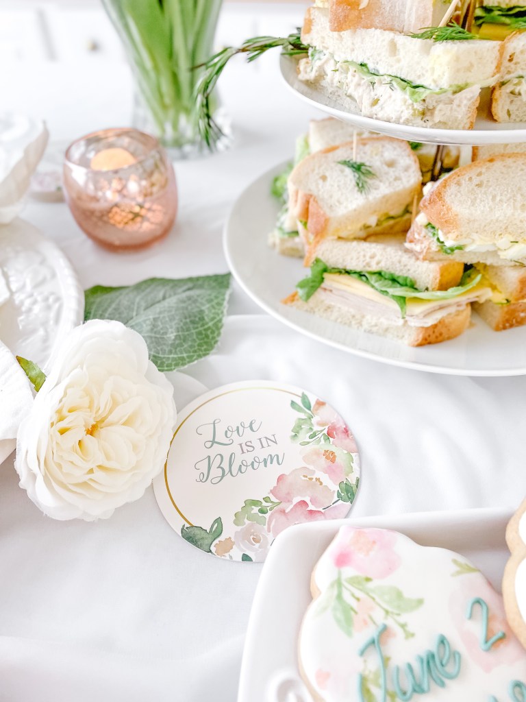 Finger sandwiches, dessert kabobs, crostini and dip, and extra special personalized cookies… this party had it all! And I am thrilled to share all of the recipes with you in this post, along with the products I used and just where I got these special cookies…!
