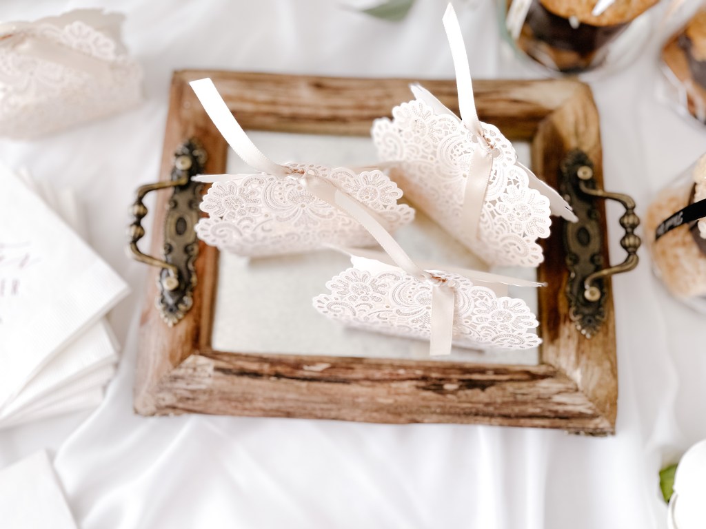 You can also leave a selection of packaging out and available for guests to create their own take-home kit! We especially love the Luscious Foil Lace Favour Box With Ribbon.