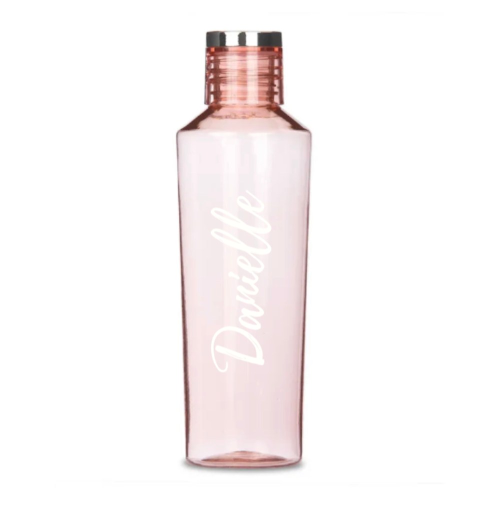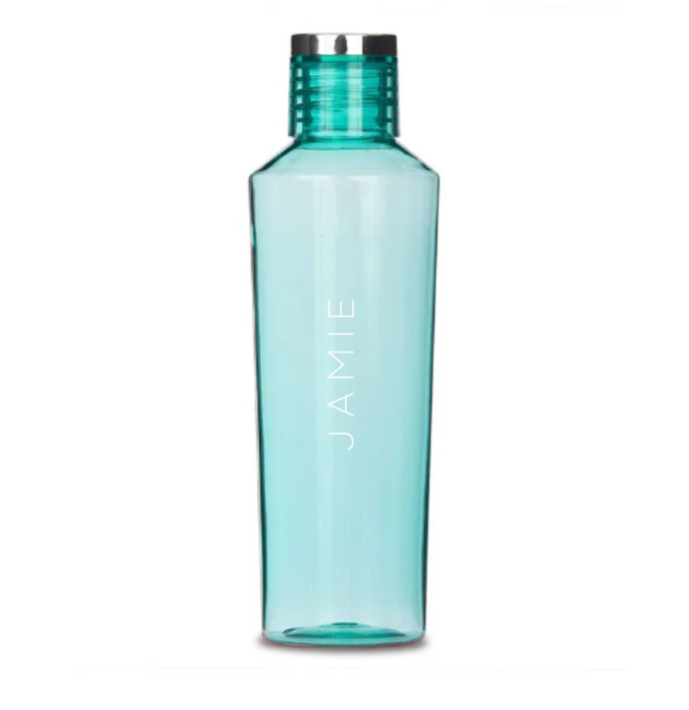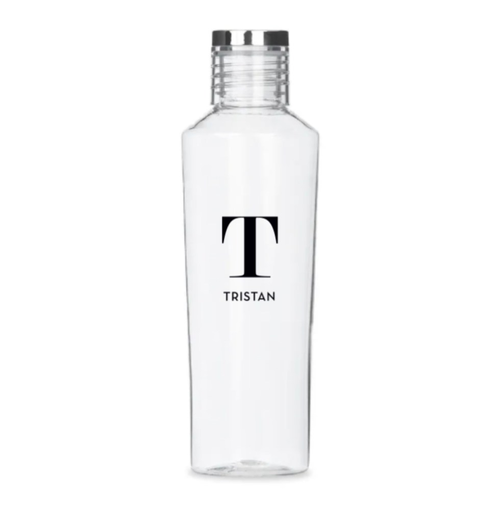 Personalized Reusable Plastic Water Bottle – Modern Serif Monogram Print, Personalized Reusable Plastic Water Bottle – Contemporary Vertical Print, Personalized Reusable Plastic Water Bottle – Calligraphy Print