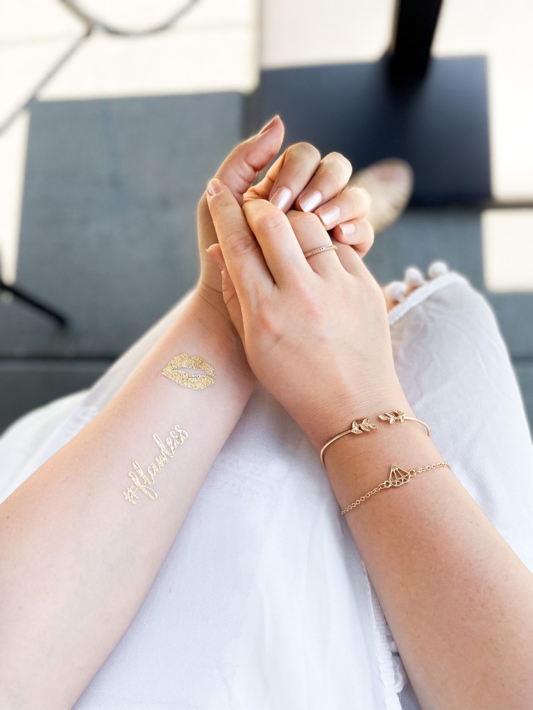 Weddingstar carries an assortment of metallic tattoo sheets, which are so much fun for those IG-worthy ‘cheers’ shots! Provide them in full for bridal showers and bachelorette outings, or cut out the neutral ones for any other event. We especially like the smooch, palm leaves, anchor, and flamingo!