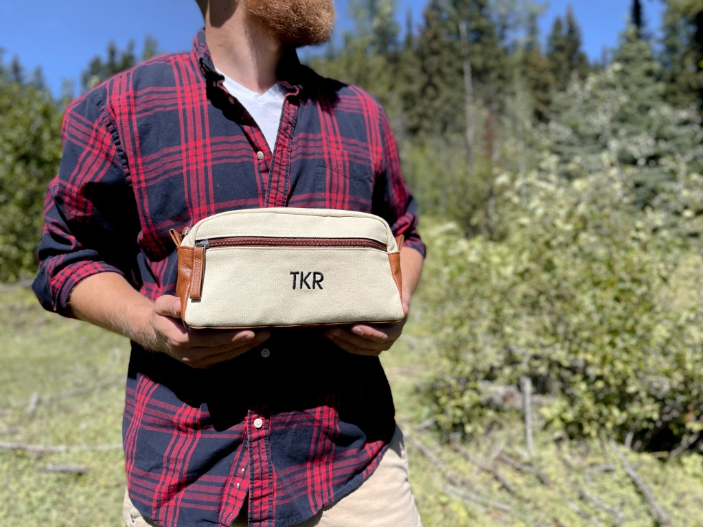 Personalized Men’s Travel Toiletry Bag – Black & Gray Canvas, Personalized Men’s Hanging Travel Toiletry Bag – Light Brown Canvas, Personalized Men’s Dual Compartment Travel Toiletry Bag – Light Brown Canvas
