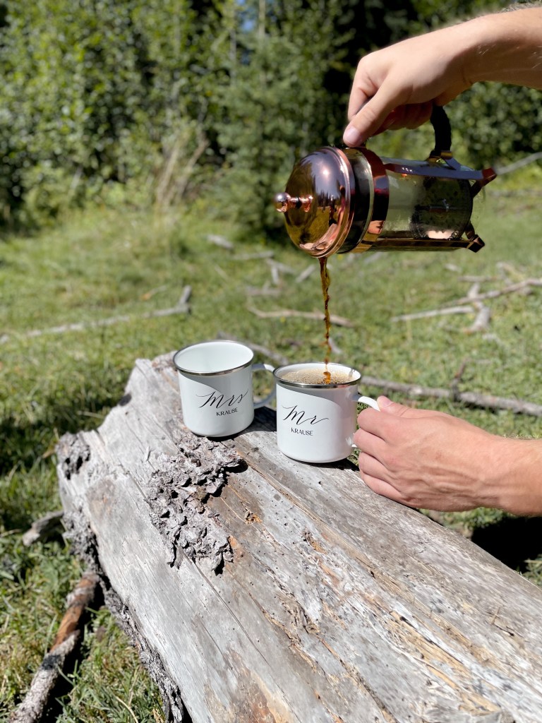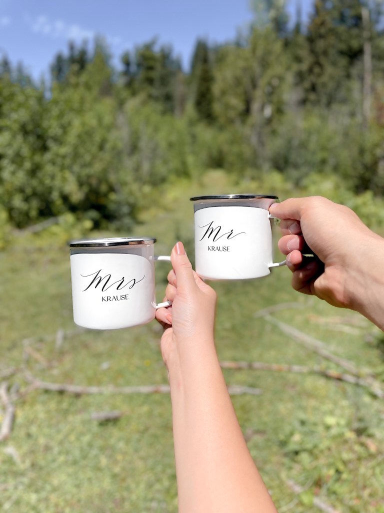 First on the list, my favourite new camping accessory, the adorable Mr. and Mrs. white enamel mugs! Weddingstar is proudly supportive of all love, so these babies are sold separately. That way you can mix and match or get two of each, depending on your own unique love story.