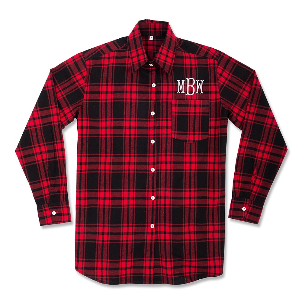 Personalized Embroidered Red Plaid Button Down Shirt For Bridesmaids, Women’s Personalized Embroidered Fluffy Plush Robe With Hood – Buffalo Plaid