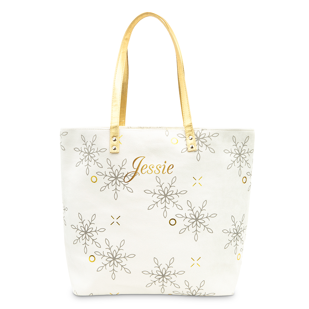 Extra-Large Personalized Velvet Tote Bag – Falling Snowflakes