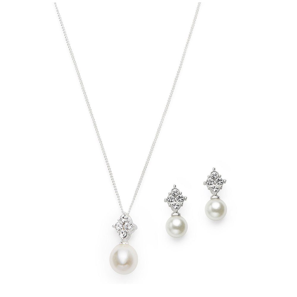Silver Necklace And Earring Set – Pearl And Crystal Drop Pendant, Silver Necklace And Earring Set – Crystal Chevron Pendant