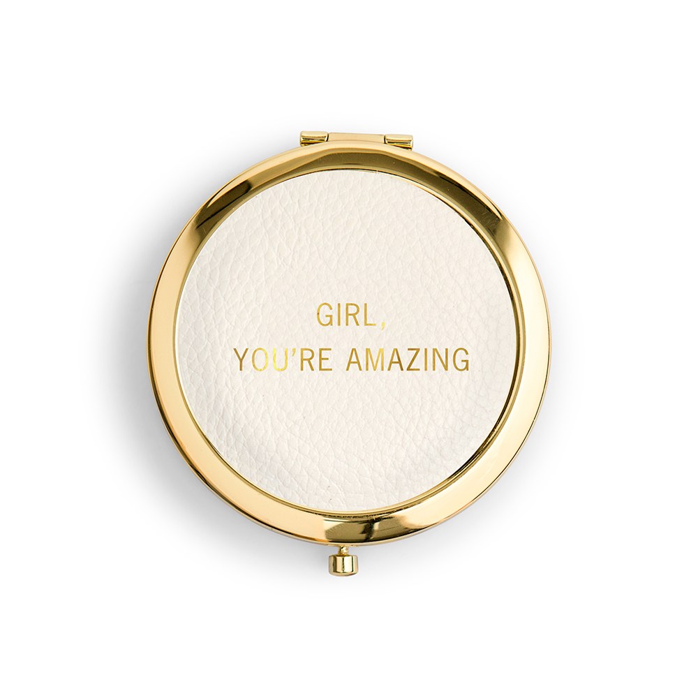 Pop a compact in her stocking! One of these gilded faux leather ones does the trick, with the cutest inspirational phrases to remind her how much she means to you (and to herself, too).