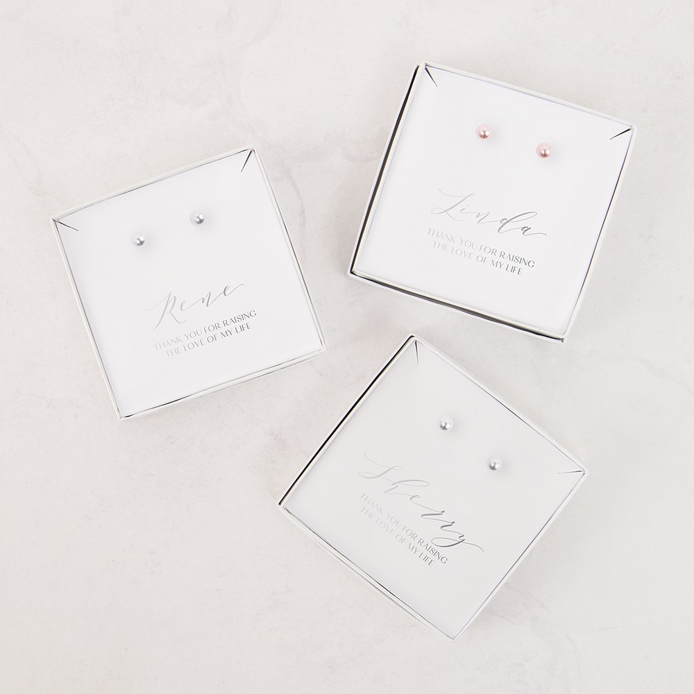 Stud earrings in a personalized gift box make for a lovely budget gift to show someone you care.