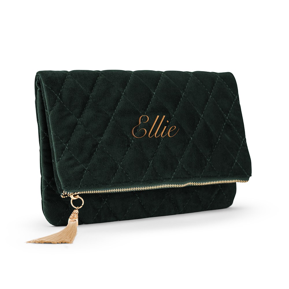 Personalized Fold Over Velvet Clutch – Emerald Green, Personalized Fold Over Velvet Clutch – Blush Pink