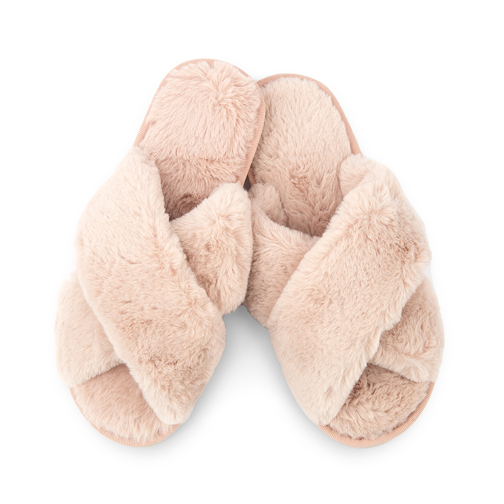 Plush Crossband Slide House Slippers – Blush Pink, Plush Crossband Slide House Slippers – Black