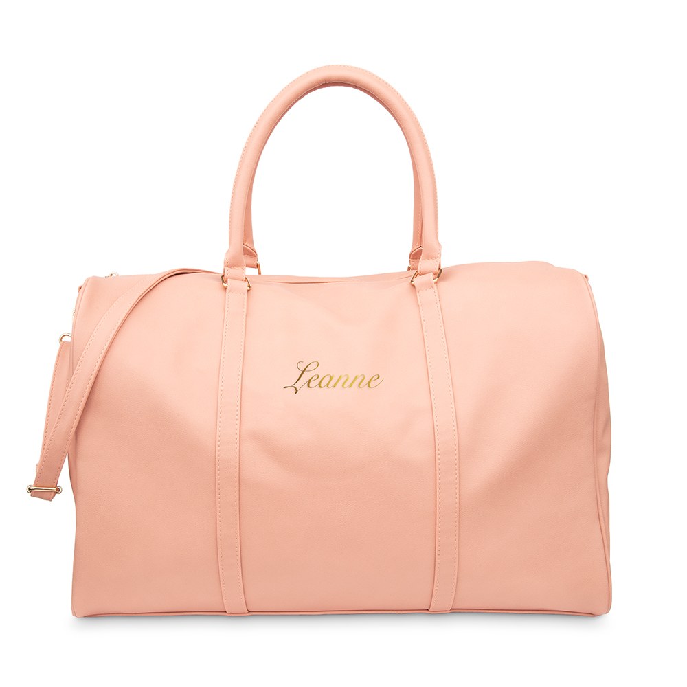 Women’s Custom Embroidered Faux Leather Weekender Travel Bag – Light Pink