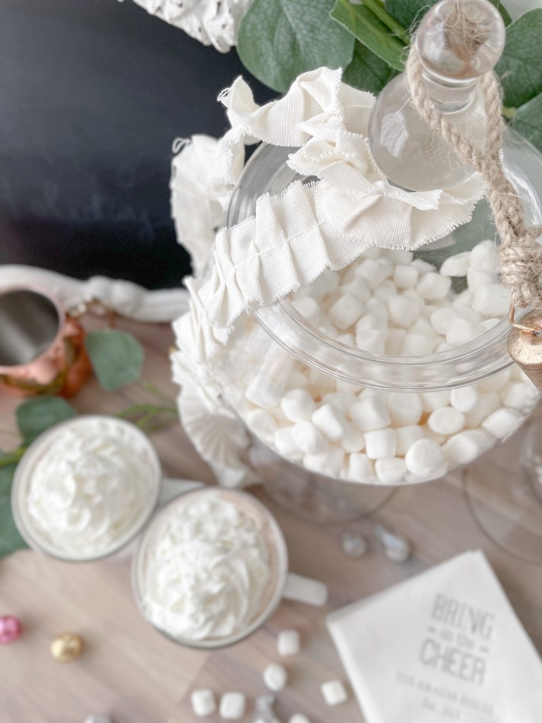 The first thing you’ll need to do is designate an area for your hot chocolate station. Choose a spot that won’t impede on daily life, and will enhance your living space. After all, half the fun in having a hot chocolate station decked out in your Christmas finery? Getting to enjoy the beautiful view, while sipping on your cup of cocoa.