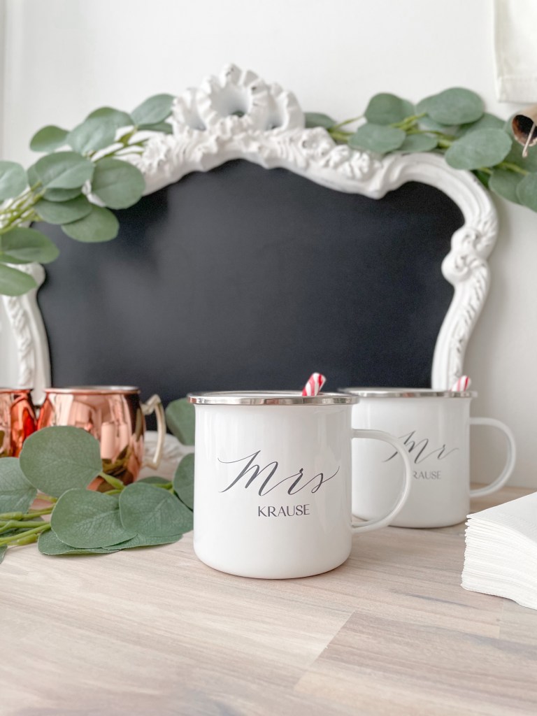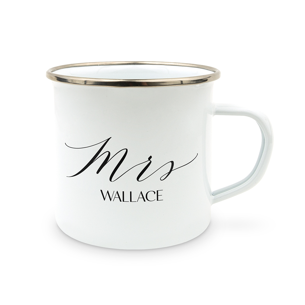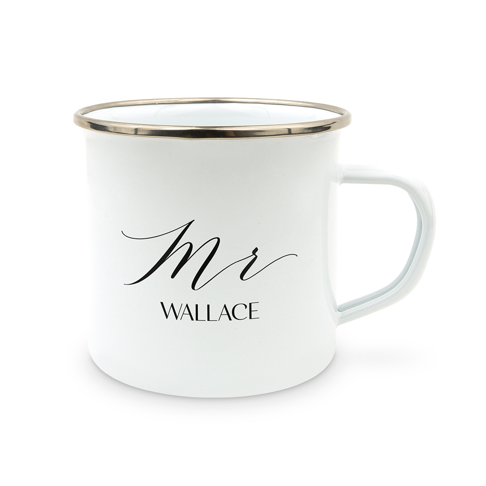 Personalized White Enamel Stainless Steel Coffee Mug – Mrs, Personalized White Enamel Stainless Steel Coffee Mug – Mr