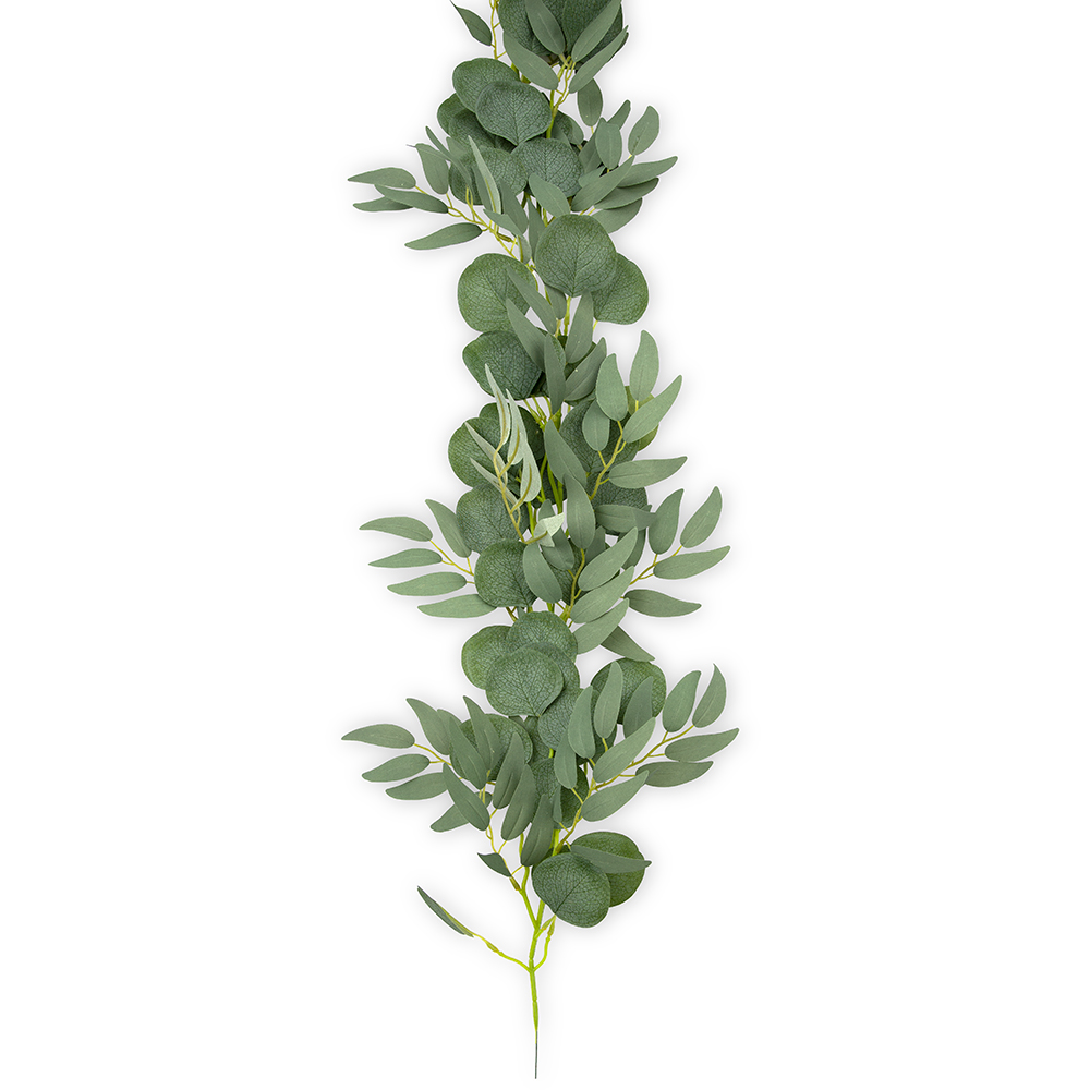 Ruffled Fabric Ribbon Trim, Faux Eucalyptus Greenery Table Garland – Green – Set Of 2