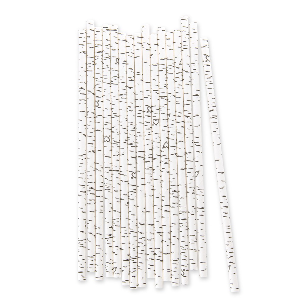 Birch Bark Print Paper Drinking Straw, Gold Foil Hearts Paper Drinking Straws