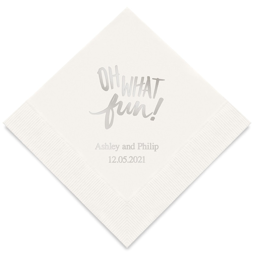 Personalized Foil Printed Paper Napkins – Winter Finery Snowflake, Personalized Foil Printed Paper Napkins – Bring On The Cheer, Personalized Foil Printed Paper Napkins – Oh What Fun!