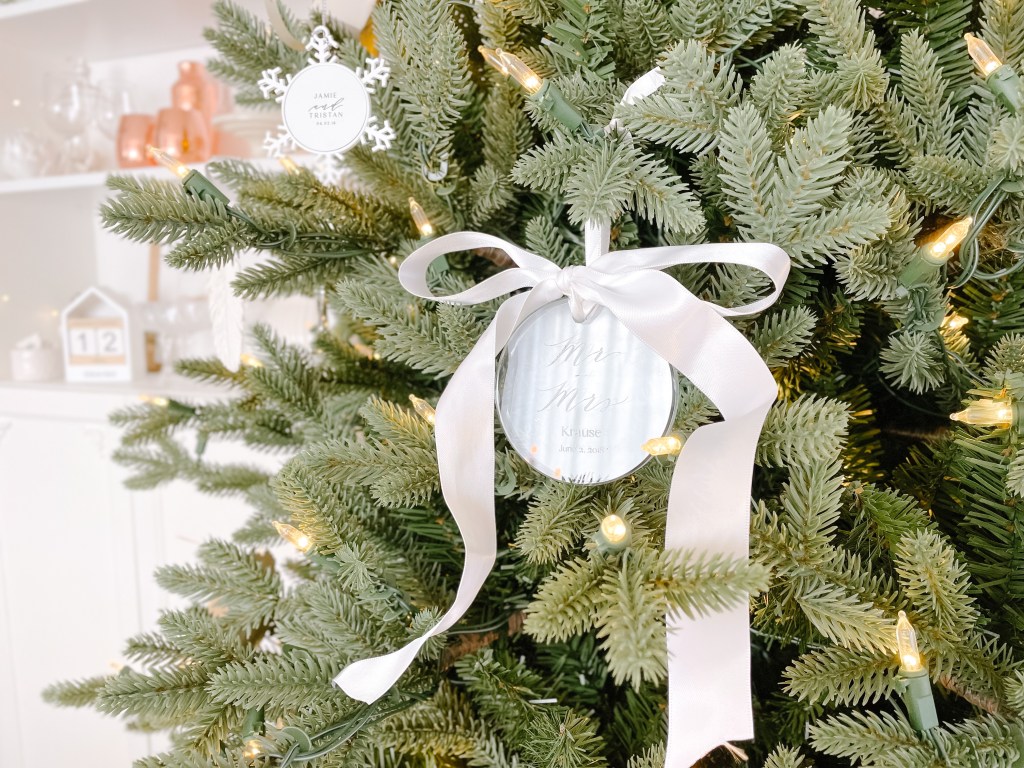 Personalized Round Clear Glass Christmas Tree Ornament – Mr + Mrs