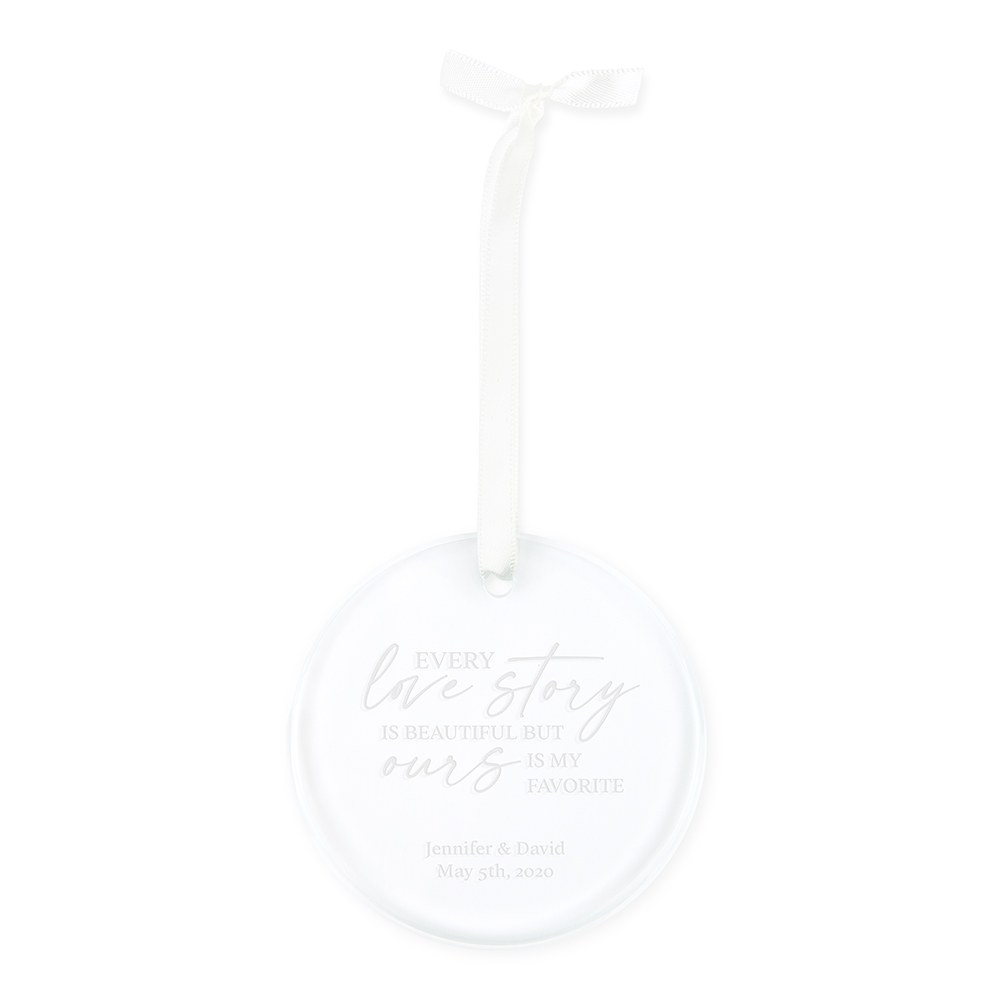 Personalized Round Clear Glass Christmas Tree Ornament – Blush Blooms, Personalized Round Clear Glass Christmas Tree Ornament – Every Love Story