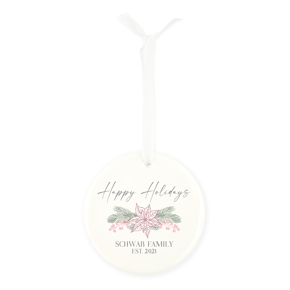 Personalized Round White Ceramic Christmas Tree Ornament – Blush Blossoms
