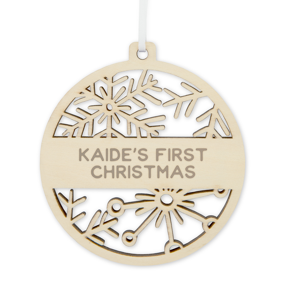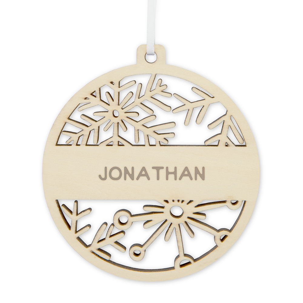 Personalized Wooden Snowflake Bauble Christmas Tree Ornament – Last Name, Personalized Wooden Snowflake Bauble Christmas Tree Ornament – Custom Text