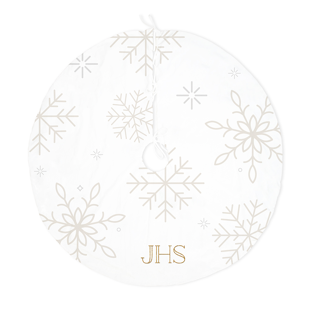 Personalized Plush Fabric White Snowflake Patterned Christmas Tree Skirt – Monogram