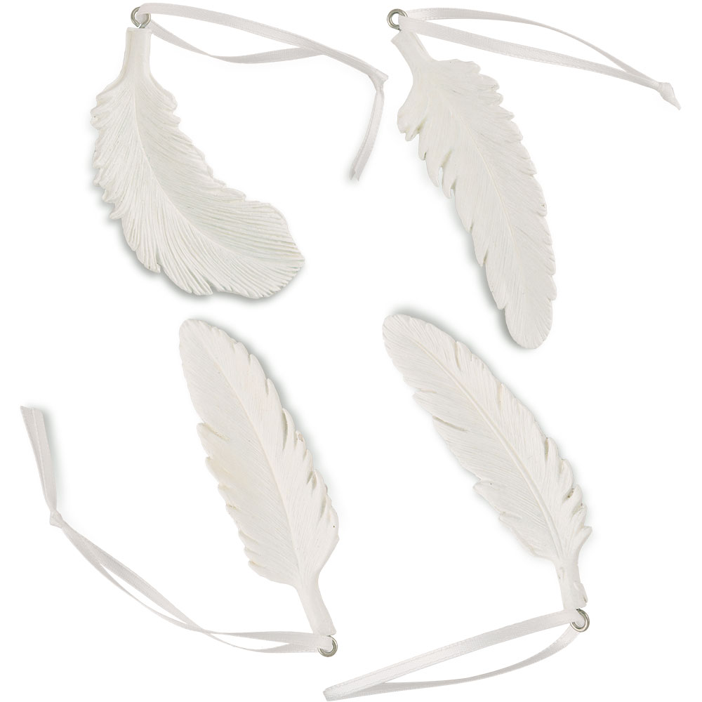 White Resin Feather Ornament Assortment