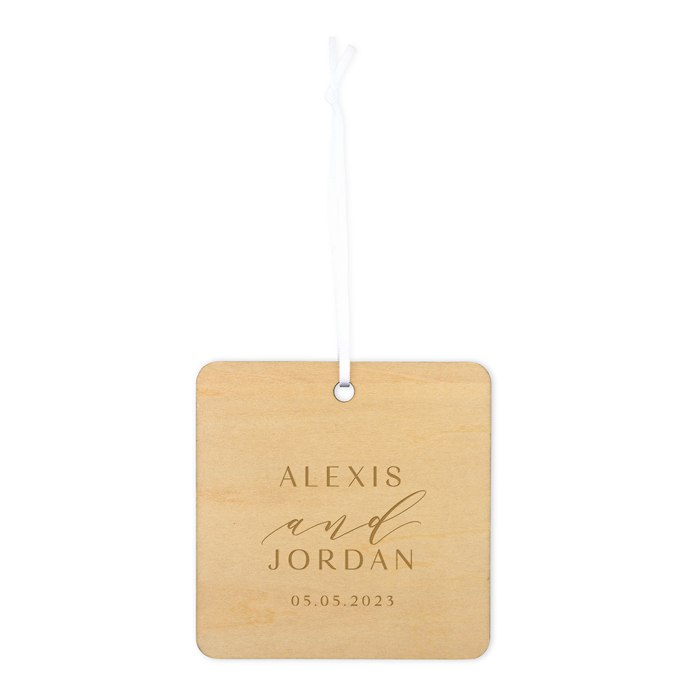 Personalized Wooden Square Christmas Tree Ornament – Modern Fairy Tale Initial, Personalized Wooden Square Christmas Tree Ornament – Modern Couple