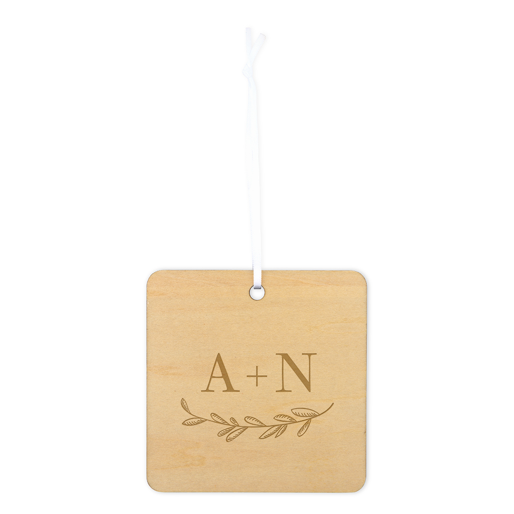 Personalized Wooden Square Christmas Tree Ornament – Garland Monogram