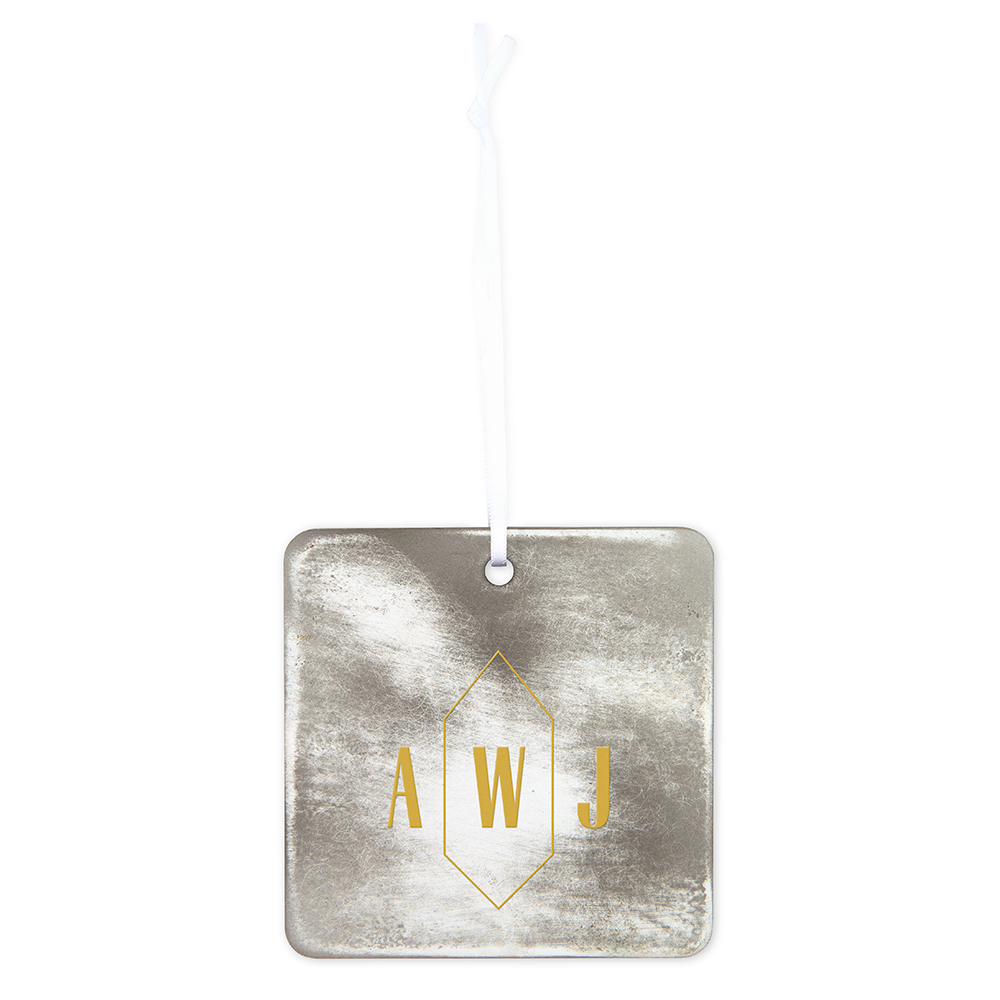 Personalized Wooden Square Christmas Tree Ornament – Modern Fairy Tale Monogram, Personalized Wooden Square Christmas Tree Ornament – Geo Monogram